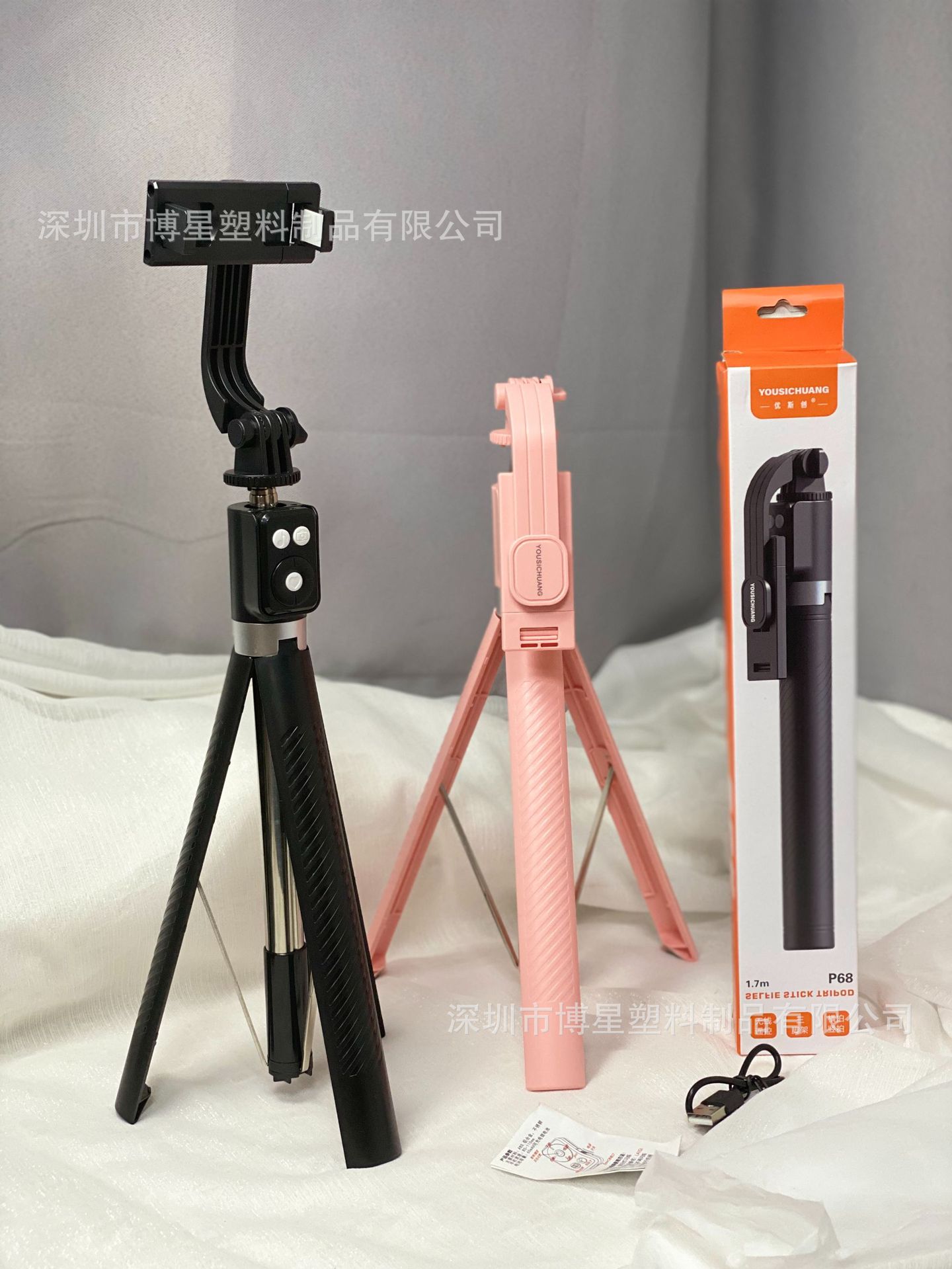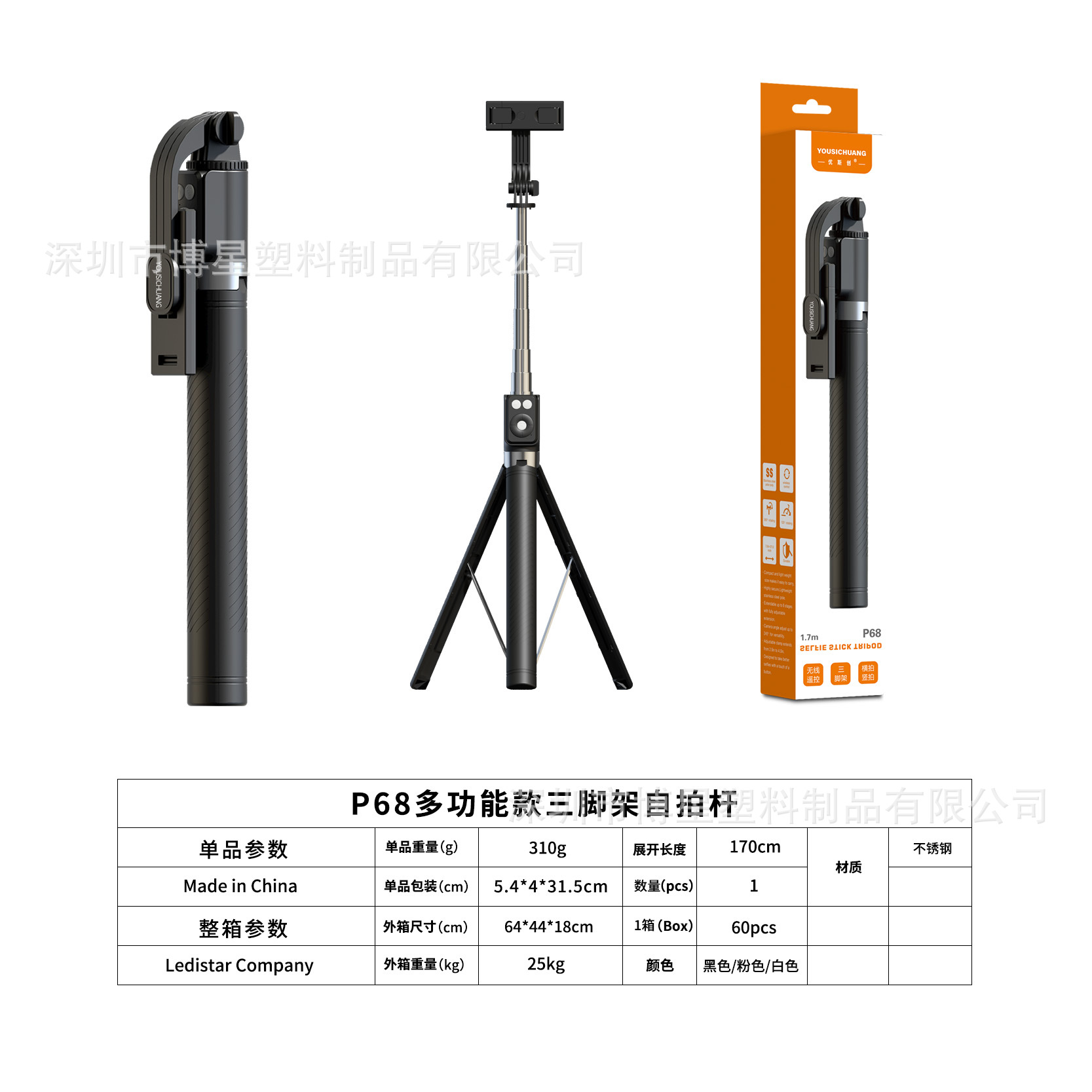 Yoschuang P68 1.7 m 긴 충전 셀카 스틱 삼각대 통합 흔들림 방지 지원 동요 톤 사진 유물