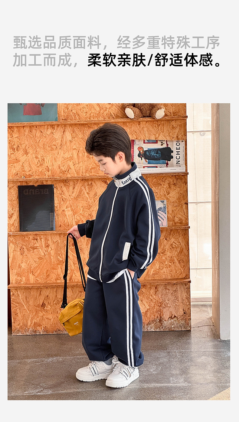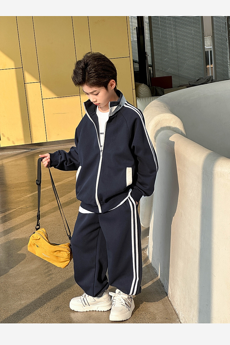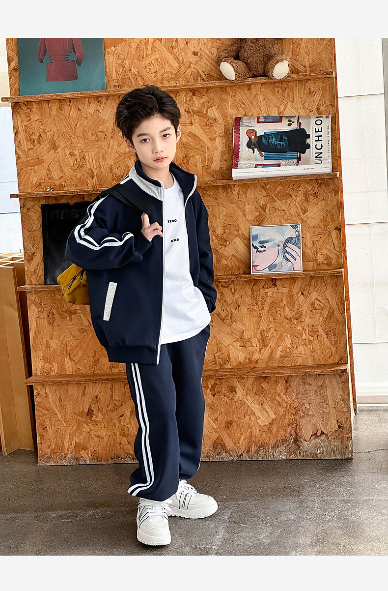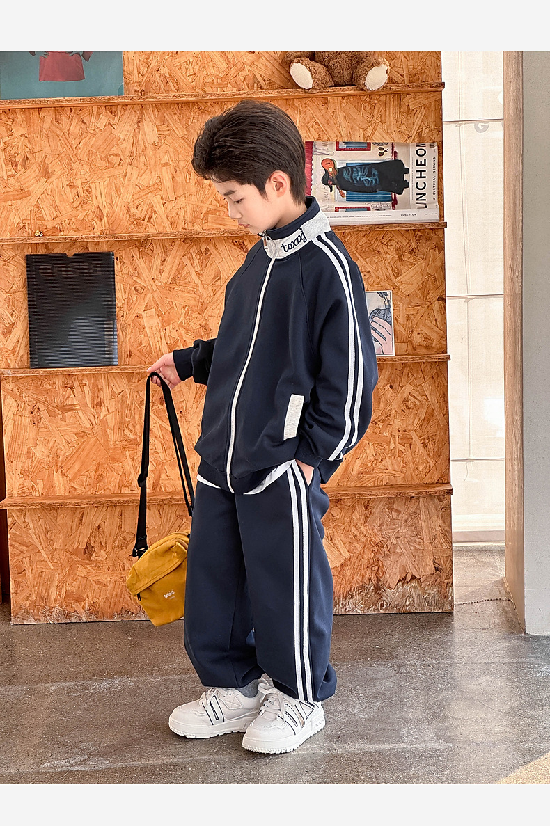 2026년 봄 신상 아동 스포츠 세트, 중대형 아동용 봄옷, 남아용 니트 자켓과 스웨트팬츠 투피스 세트스토어 가기