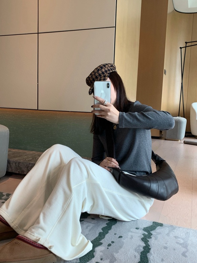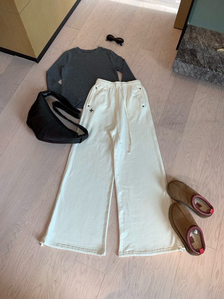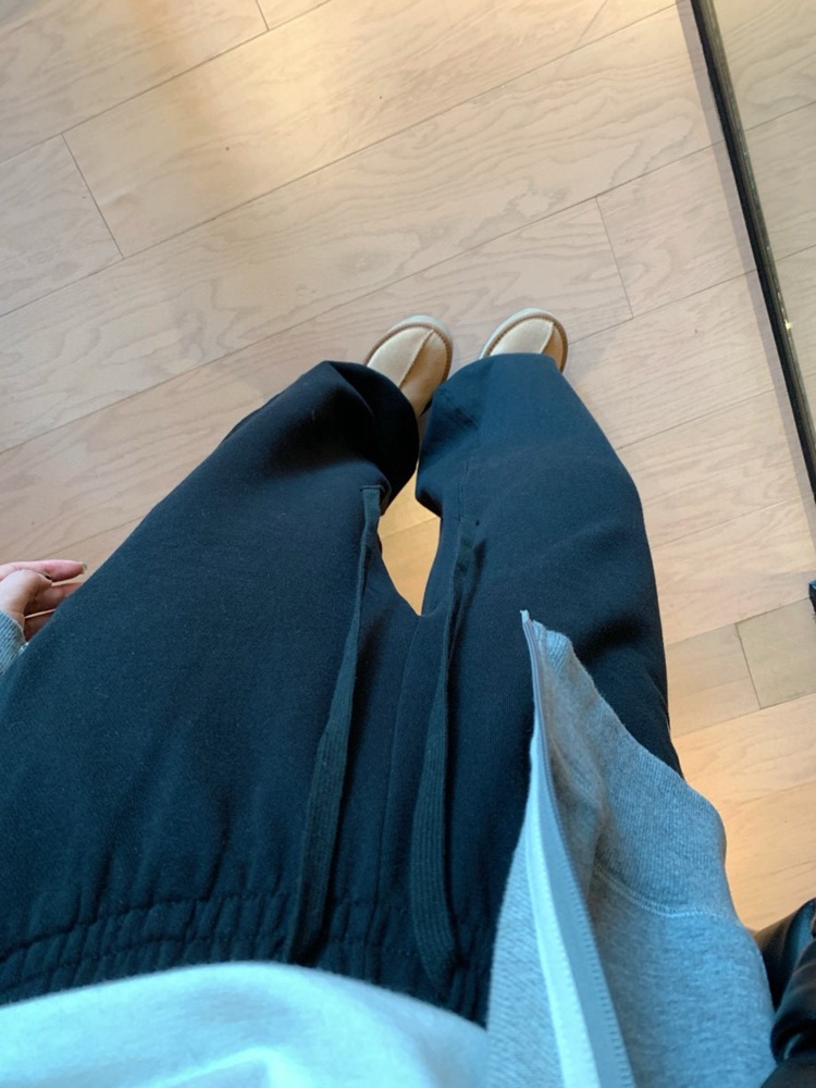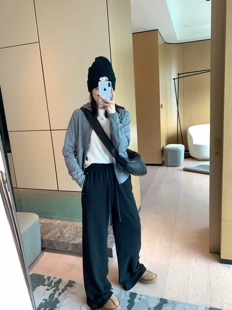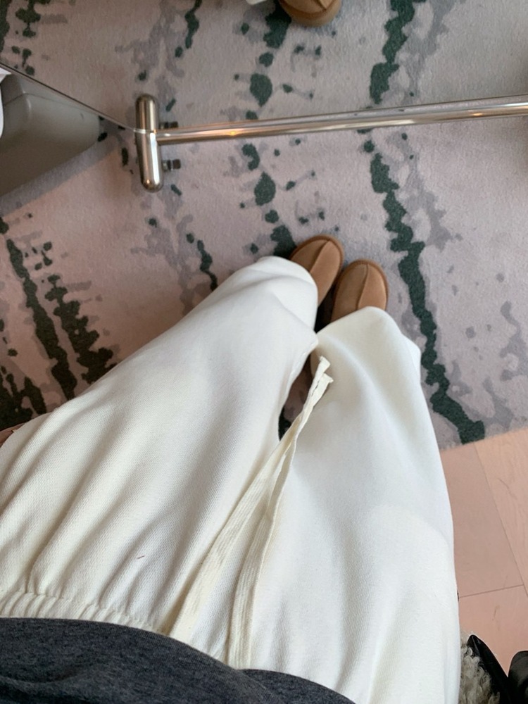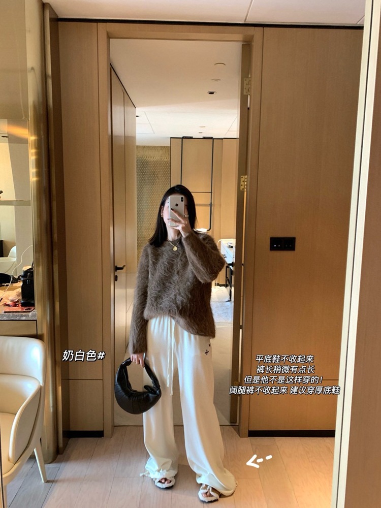 裤脚宽收起来弧度大 贼显瘦哈哈哈哈哈 而且面料垂坠这很难得!