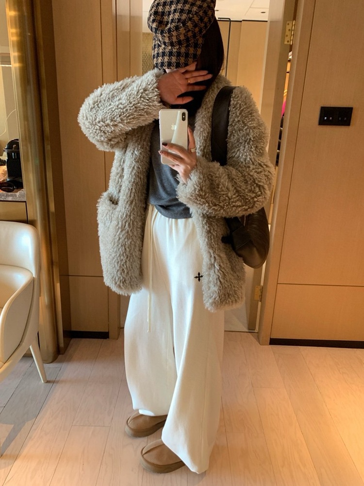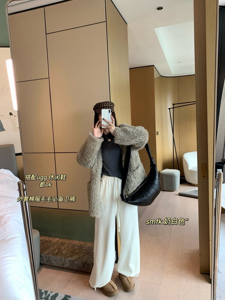 奶白色就是很秋冬的那个白色调 搭配ugg靴子 大衣暖色调都非常nice