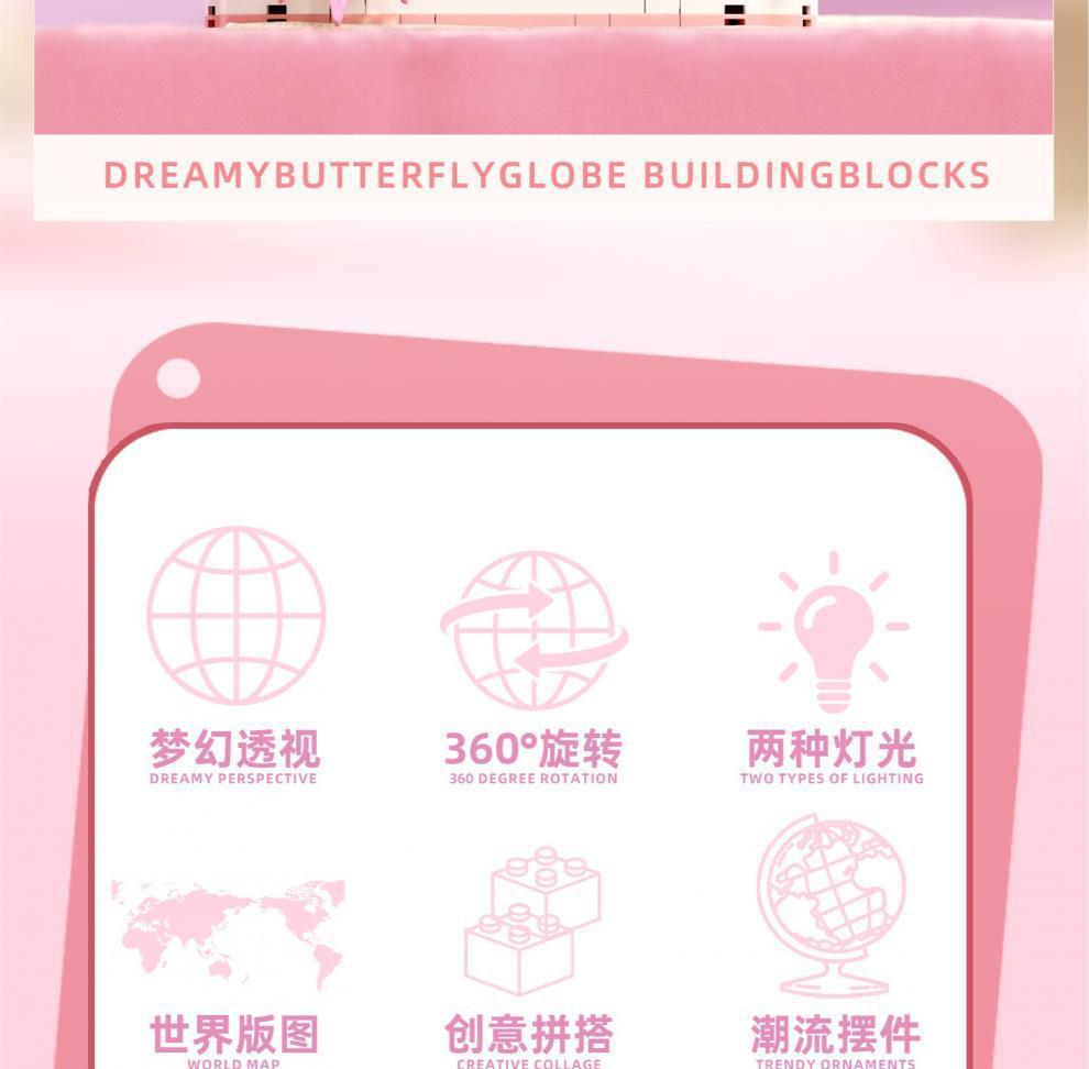 • 90105 지구본 (나비) 1460개 블록 [지구본 본체 회전 가능 + 스위치 작동 시 발광]