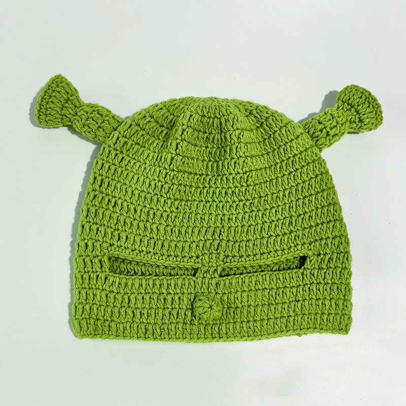 피우이와 같은 스타일의 모자, 남녀공용 가을 겨울용 녹색 몬스터 슈렉 모직 모자, 재미있는 해외 수제 니트 모자