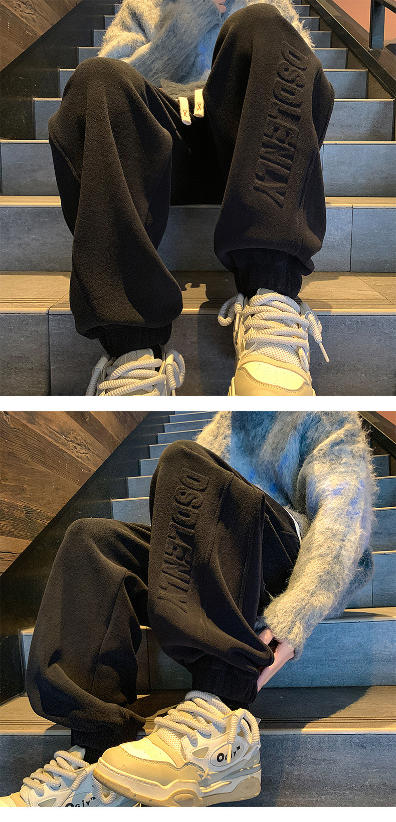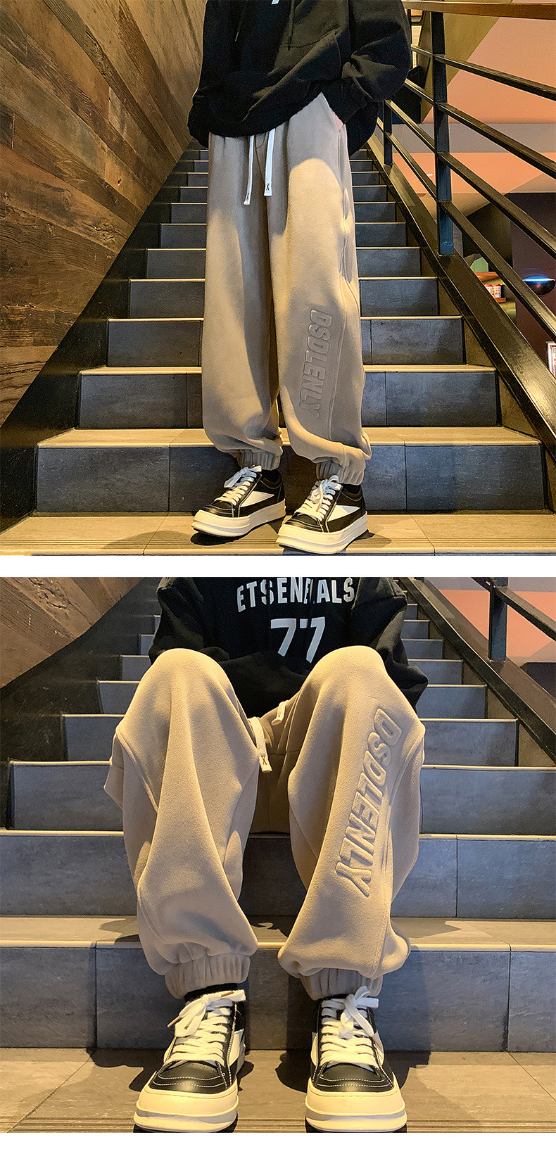 무거운 양면 양털 운동복 남자 가을/겨울 기모 두꺼운 다리 발가락 캐주얼 바지 느슨한 유행 브랜드 스포츠 바지스토어 가기