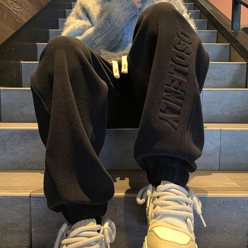 무거운 양면 양털 운동복 남자 가을/겨울 기모 두꺼운 다리 발가락 캐주얼 바지 느슨한 유행 브랜드 스포츠 바지