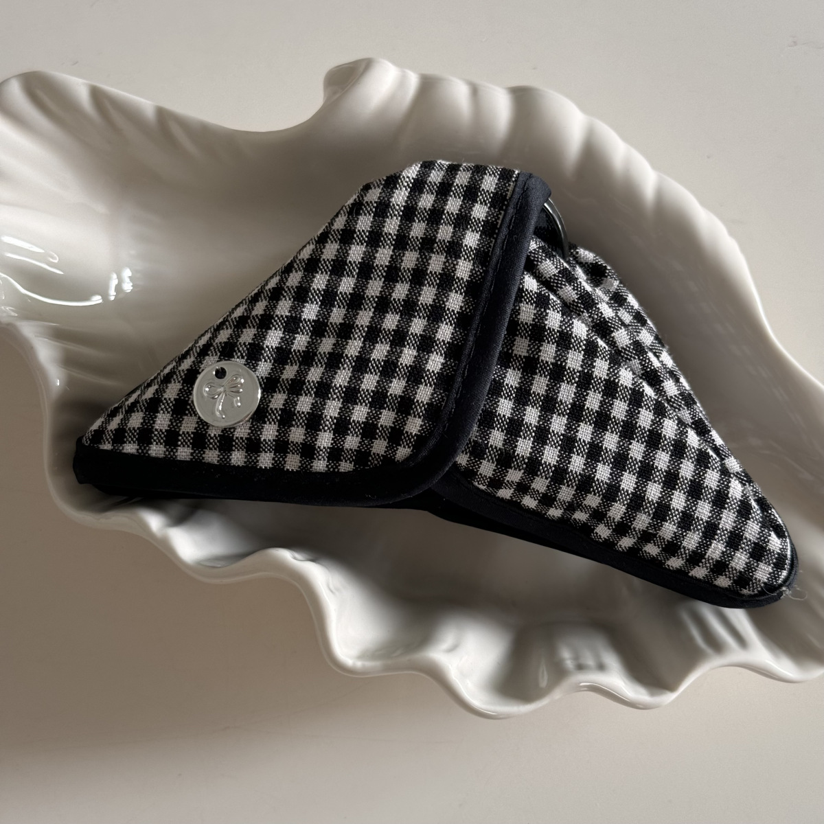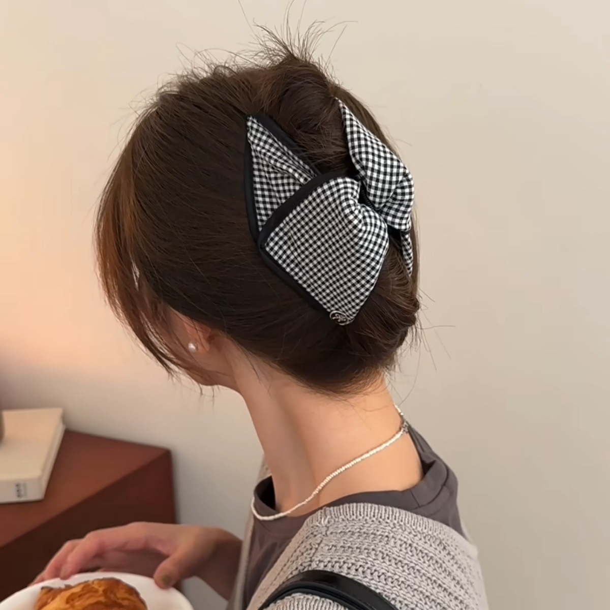 고급 흑백 격자 무늬 헝겊 삼각형 그랩 클립 상어 클립 머리핀 BB 클립 라인스톤 매듭 머리 액세서리스토어 가기