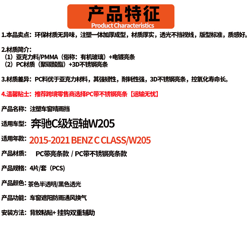 벤츠 C 클래스 W205 윈도우 비 실드 벤츠 C 클래스 W205 윈도우 바이저 메르세데스 벤츠 C 클래스 W205 윈도우 바이저에 적용 가능