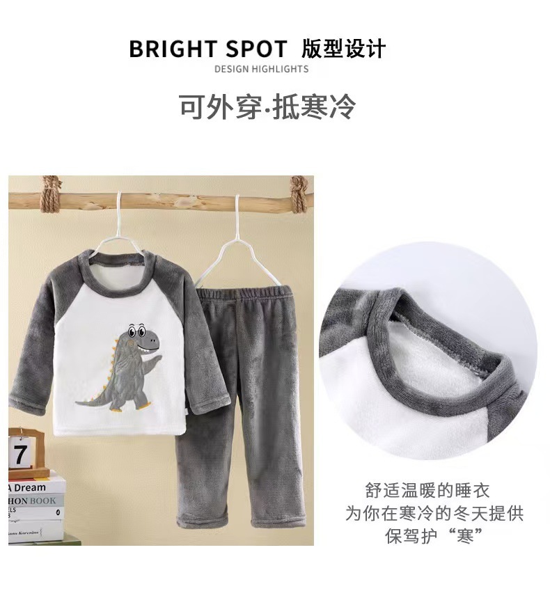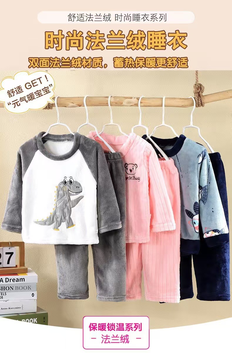 가을과 겨울 세트 어린이 플란넬 잠옷 기모 큰 어린이를위한 두꺼운 소년 소녀 집 옷 따뜻한 산호 양털스토어 가기