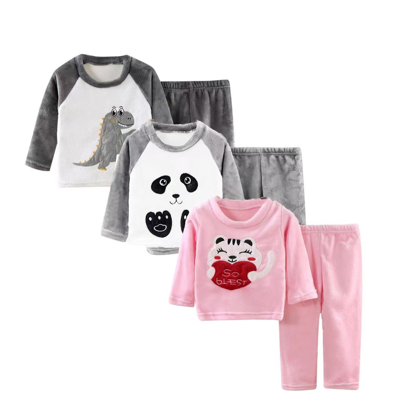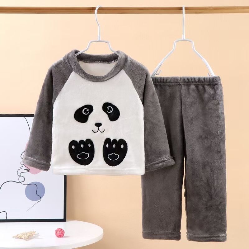 가을과 겨울 세트 어린이 플란넬 잠옷 기모 큰 어린이를위한 두꺼운 소년 소녀 집 옷 따뜻한 산호 양털