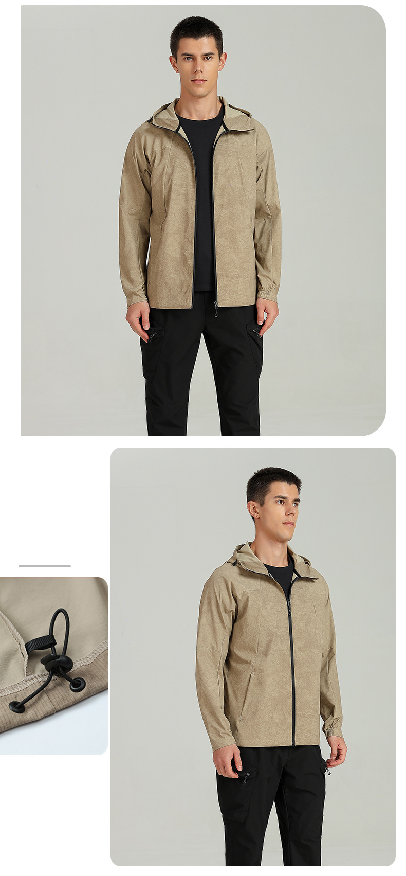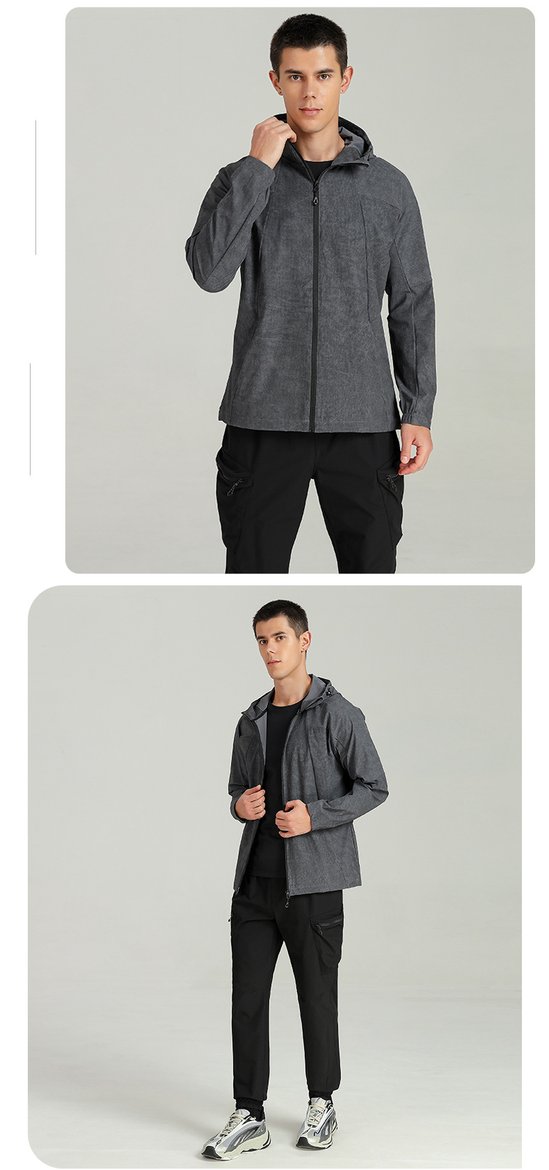 야외 스포츠 재킷 남자의 가을과 겨울 등산 방풍 후드 피트니스 달리기 세트 지퍼 카디건 빠른 건조 긴팔 탑스토어 가기
