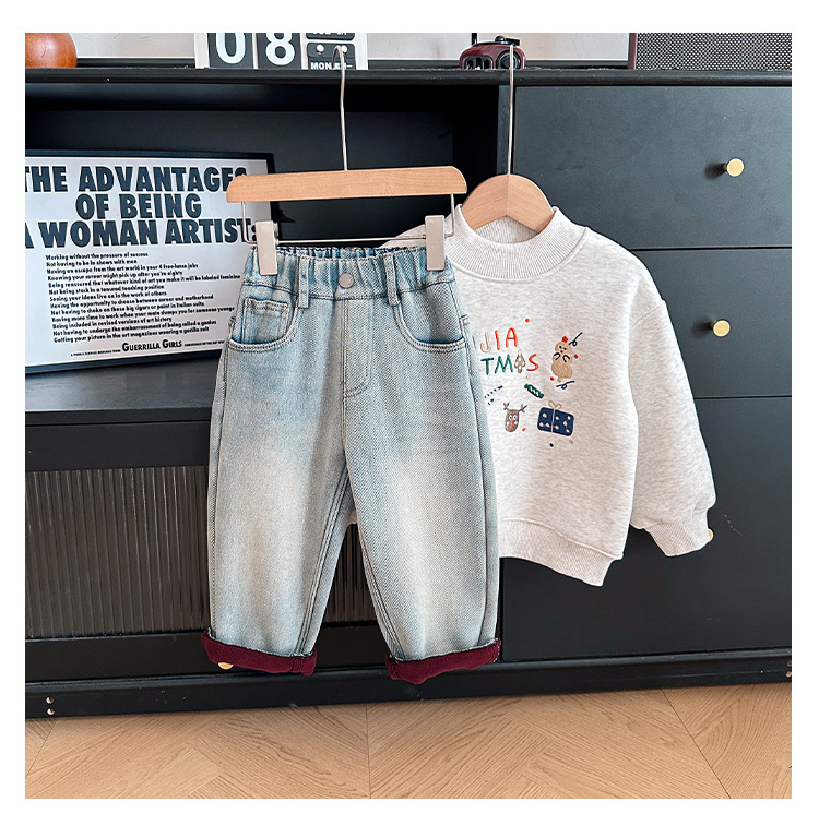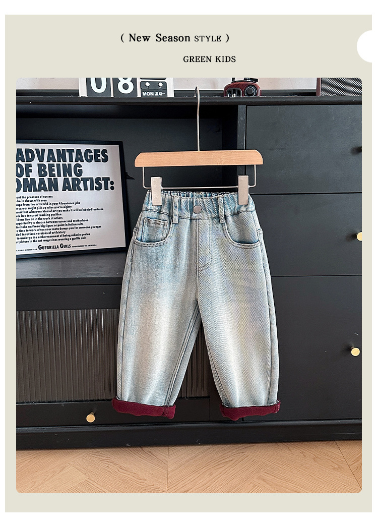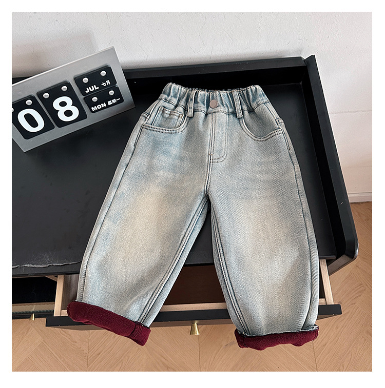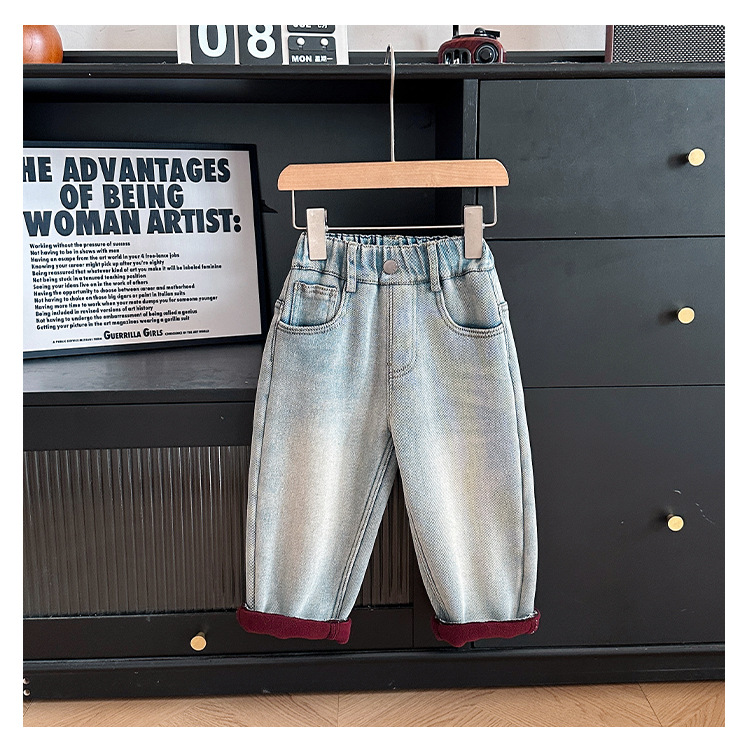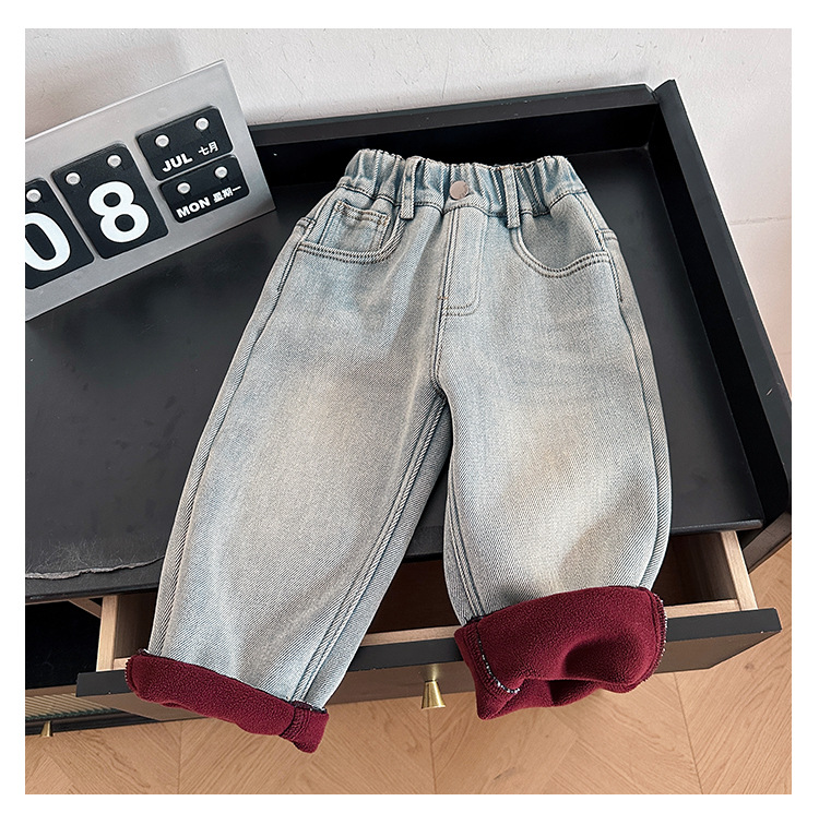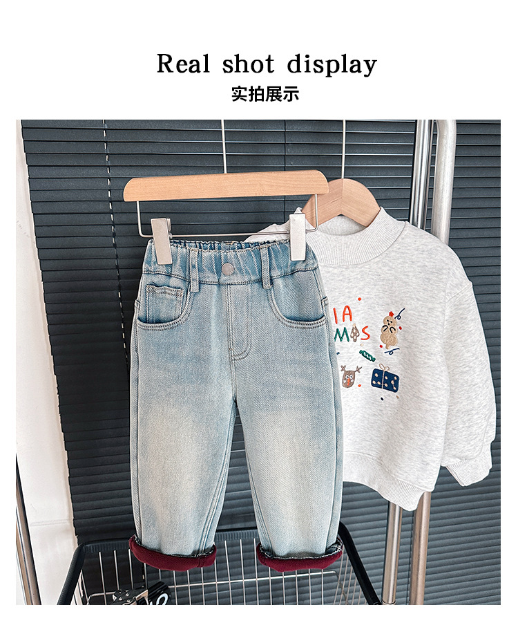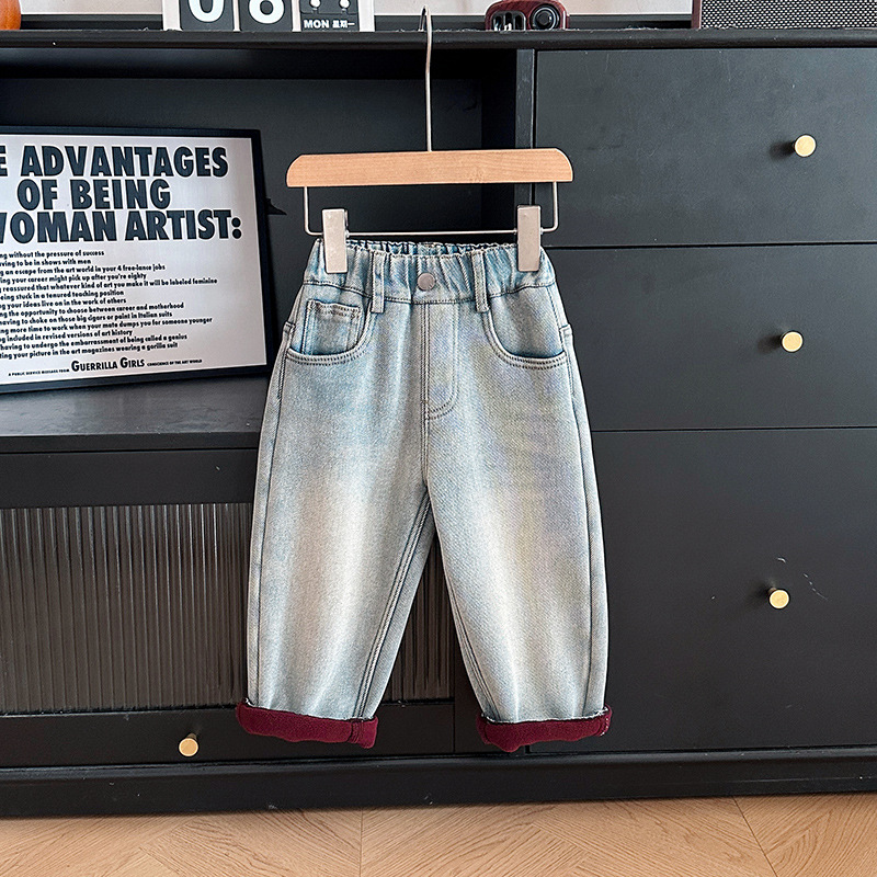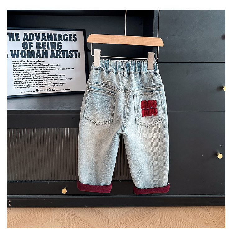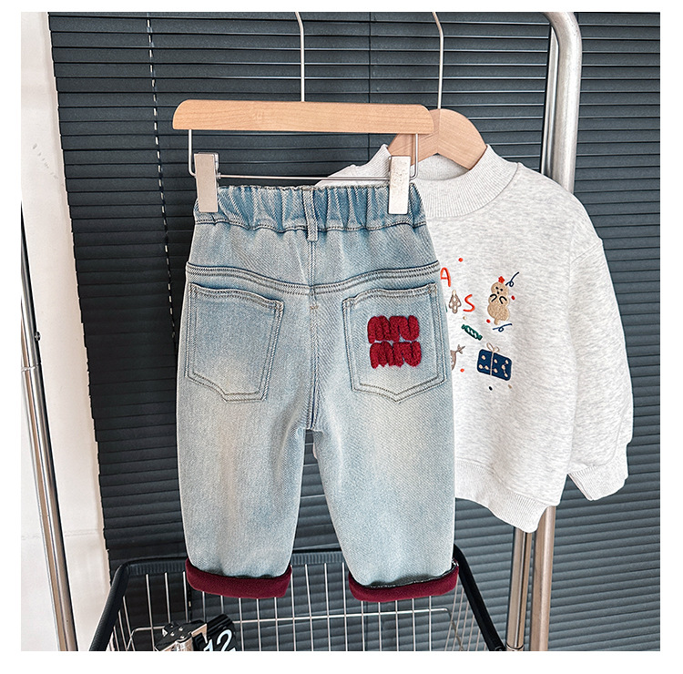 샤나오 2024 겨울 새 어린이 바지 어린이 맞춤형 알파벳 바지 소년 올매치 라이트 컬러 기모 청바지스토어 가기