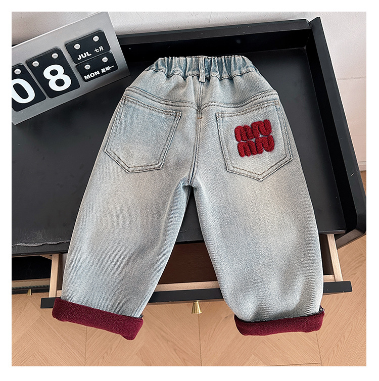 샤나오 2024 겨울 새 어린이 바지 어린이 맞춤형 알파벳 바지 소년 올매치 라이트 컬러 기모 청바지