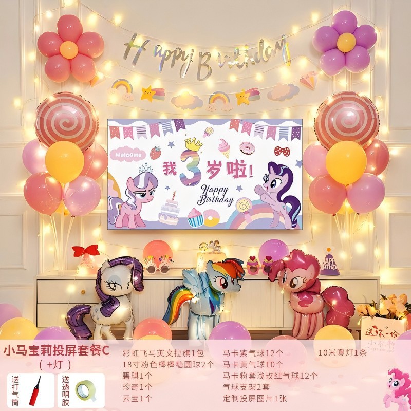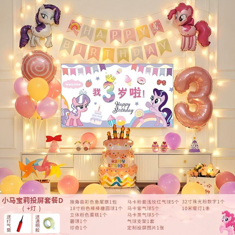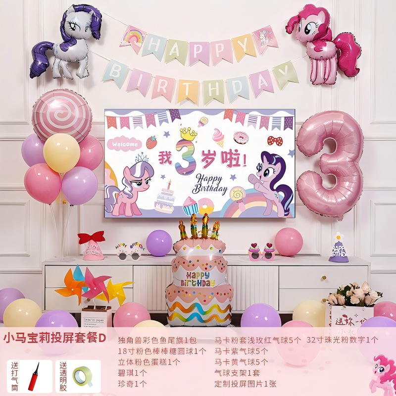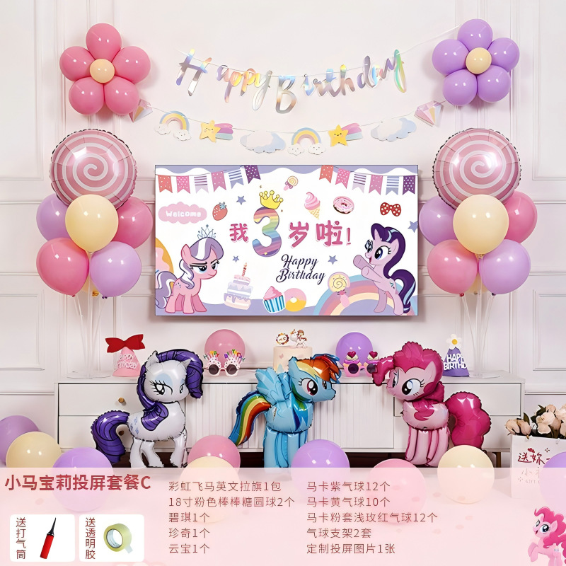 포니 폴리 테마 생일 풍선 장식 장면 레이아웃 유니콘 배경 벽 공주 어린이 소녀스토어 가기