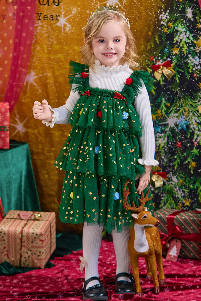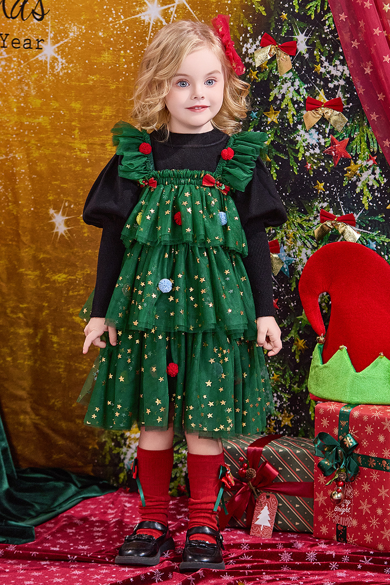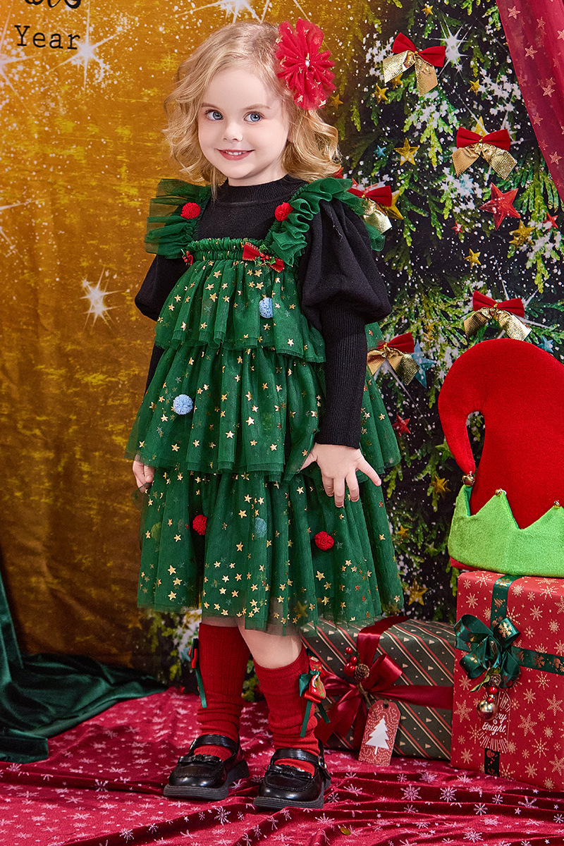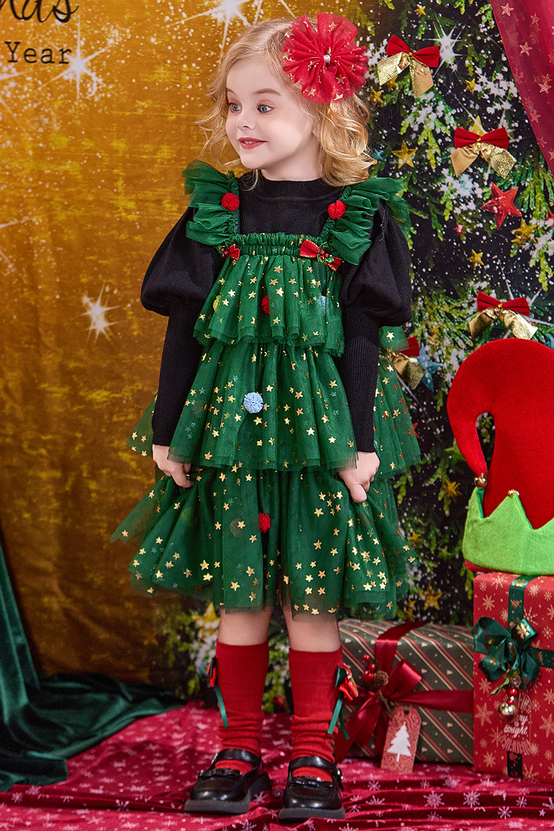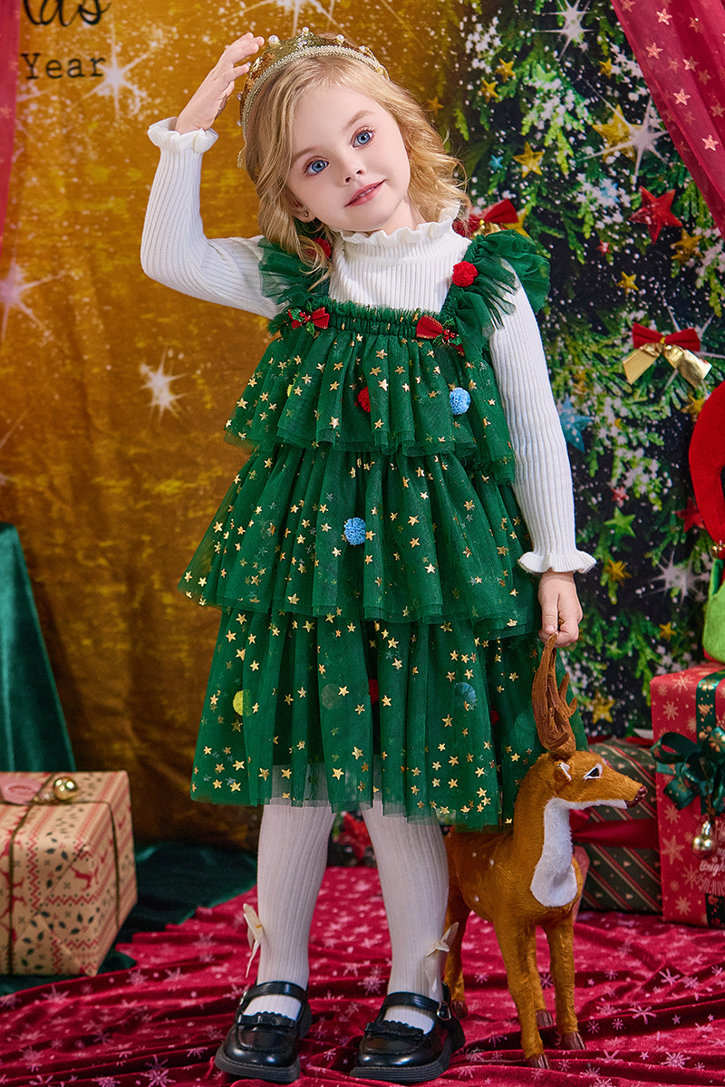 크리스마스 신상 공연 의상 여아 드레스 가을 겨울 어린이 퍼프 스커트 여아 공주 드레스 휴일 드레스
