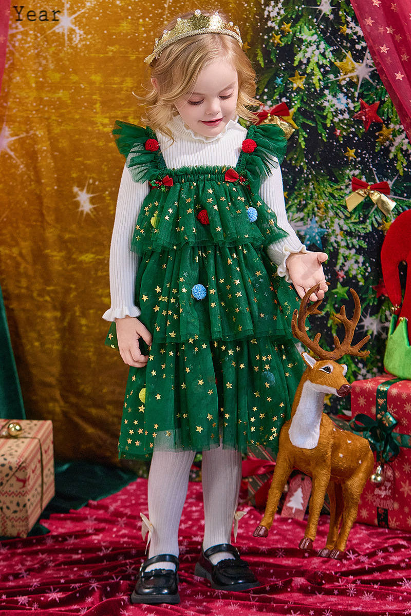 크리스마스 신상 공연 의상 여아 드레스 가을 겨울 어린이 퍼프 스커트 여아 공주 드레스 휴일 드레스스토어 가기