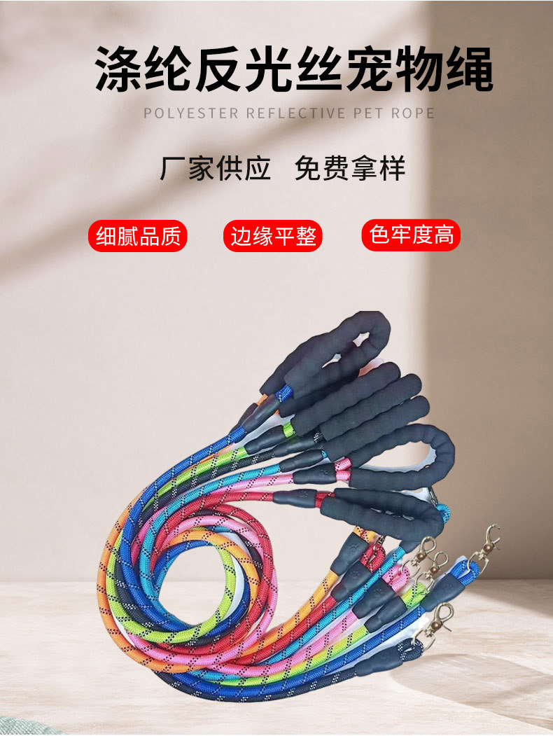 반사 실크 애완 동물 로프 개 고양이 견인 로프 크고 중간 크기의 애완 동물 견인 로프 폴리 에스테르 반사 폭발 방지 견인 로프