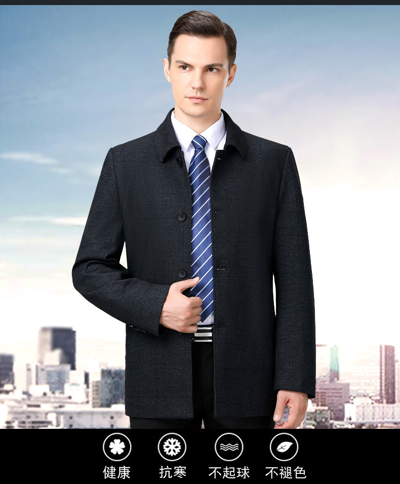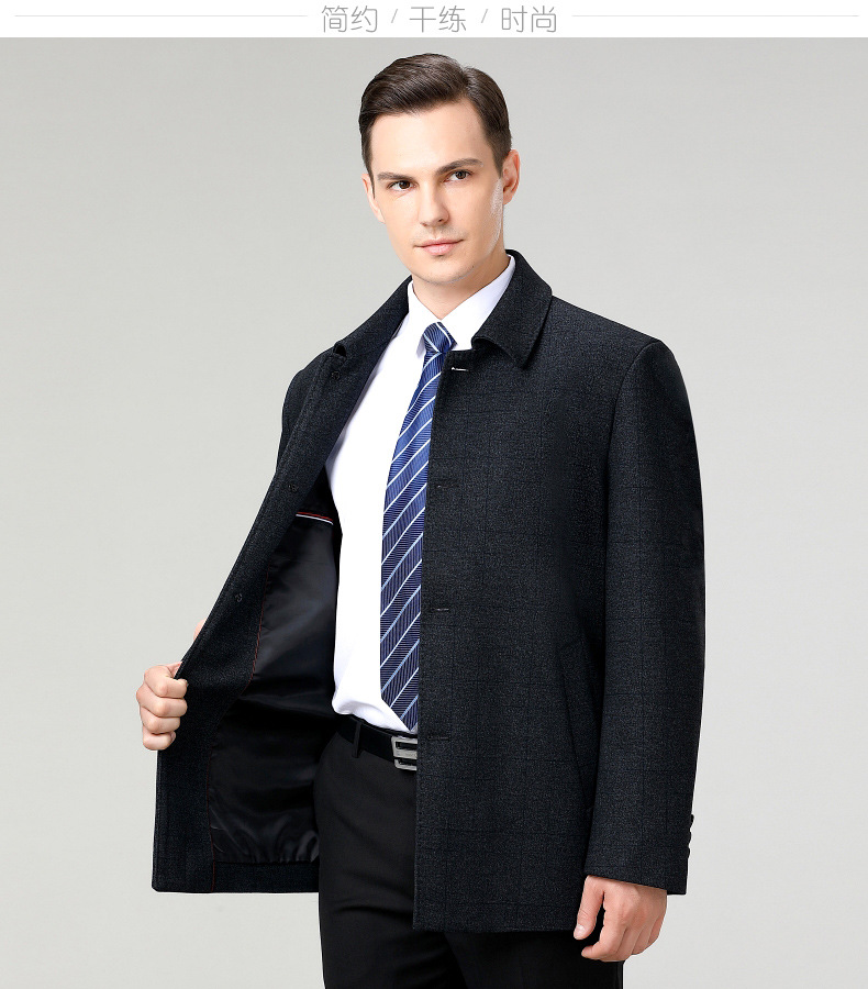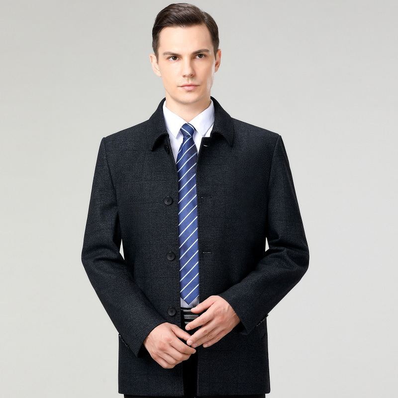 빅 브랜드 하이 엔드 울 재킷 가을 비즈니스 캐주얼 남성 재킷 격자 무늬 옷깃 중년 아빠 재킷