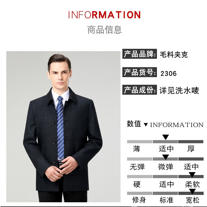 빅 브랜드 하이 엔드 울 재킷 가을 비즈니스 캐주얼 남성 재킷 격자 무늬 옷깃 중년 아빠 재킷스토어 가기