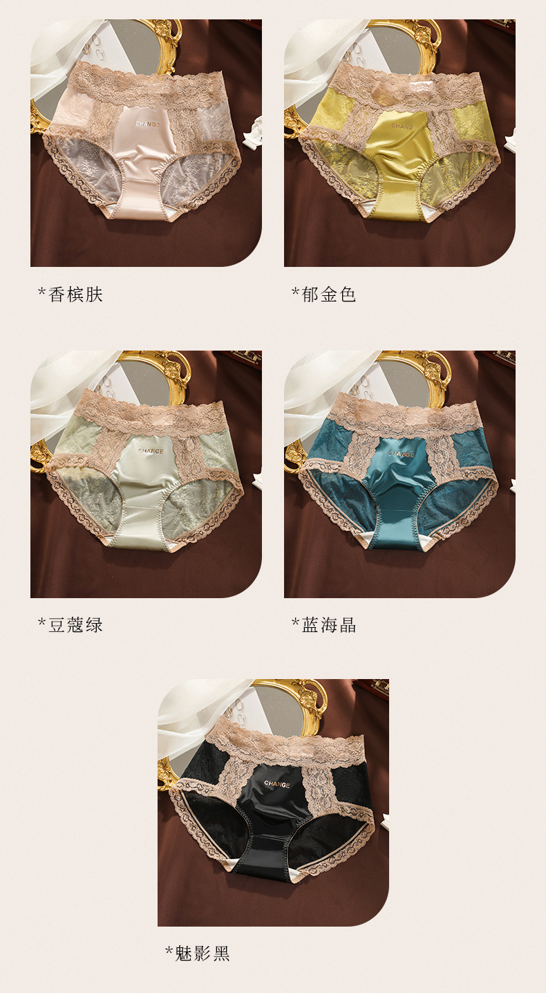 2025 봄 여름 신상 여성 속옷, 레이스가 매혹적이고 통기성이 뛰어나며 가벼운 고급 새틴 뽕나무 실크 항균 밑단 팬티스토어 가기