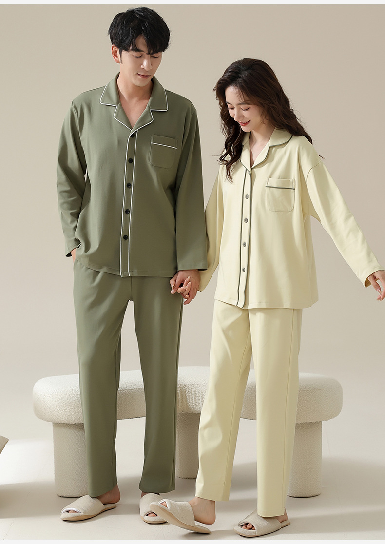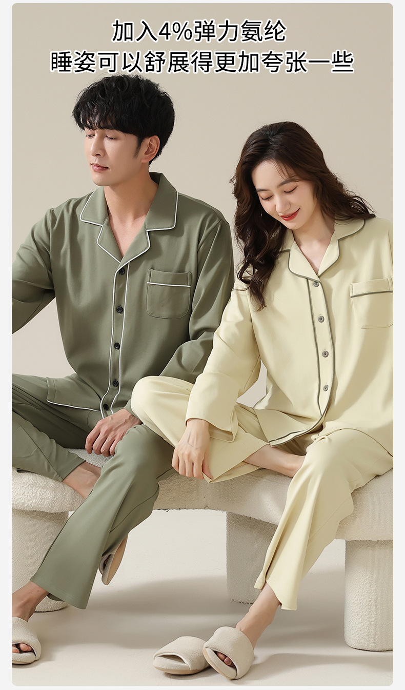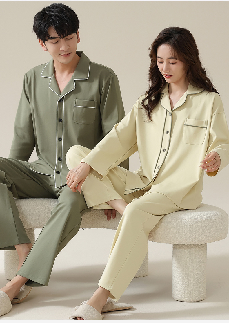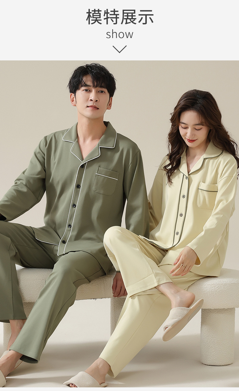 커플 잠옷 가을과 겨울 칼라면 긴팔 바지 카디건 옷깃 봄과 가을 아우터웨어 세트 남녀 홈 옷스토어 가기