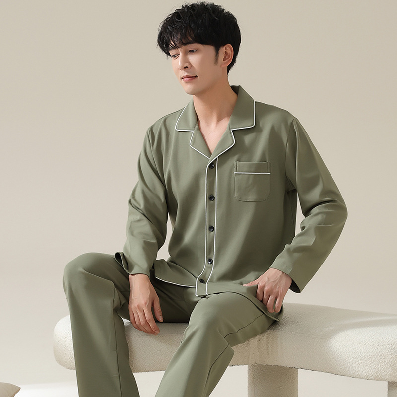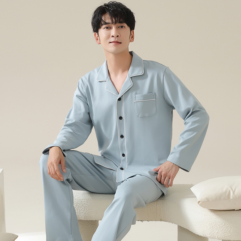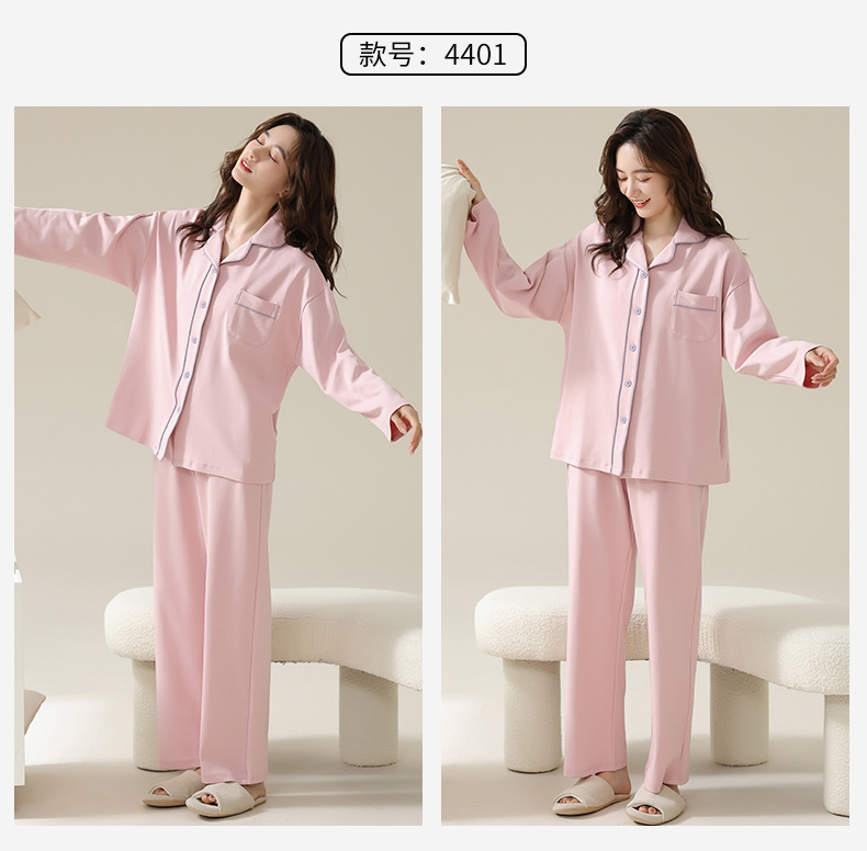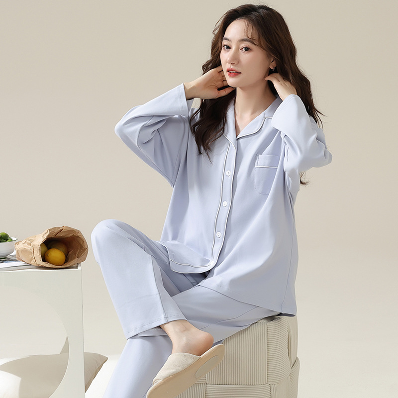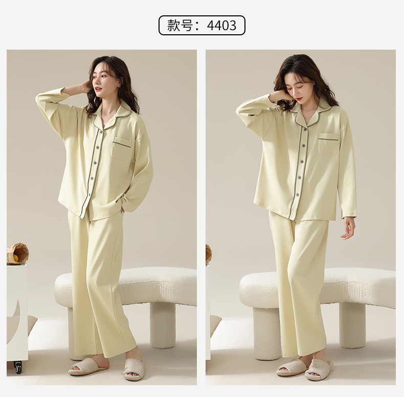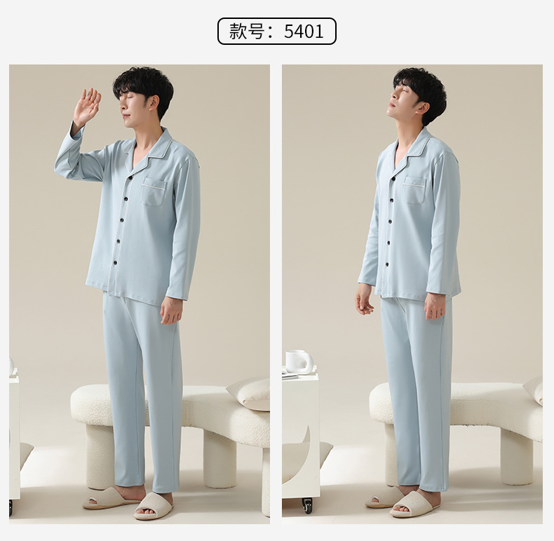 커플 잠옷 가을과 겨울 칼라면 긴팔 바지 카디건 옷깃 봄과 가을 아우터웨어 세트 남녀 홈 옷스토어 가기