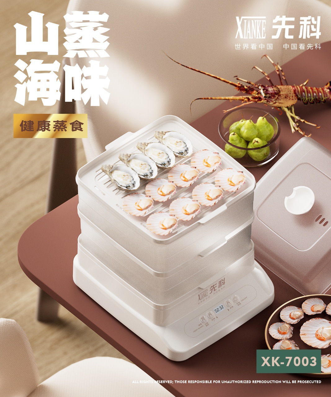 Xianke 다기능 전기 증기선 지능형 타이밍 예약 다층 가열 투명 전기 증기선 3 층 증기선 대용량