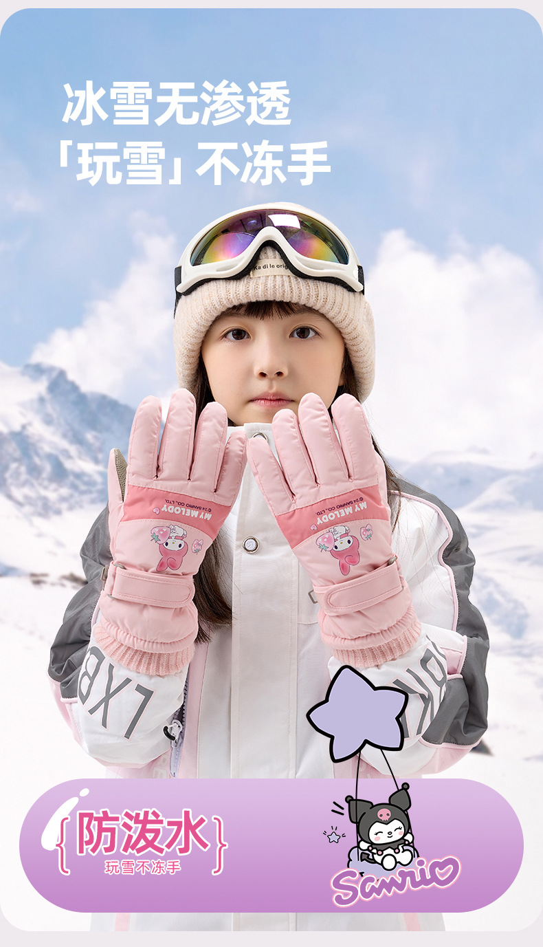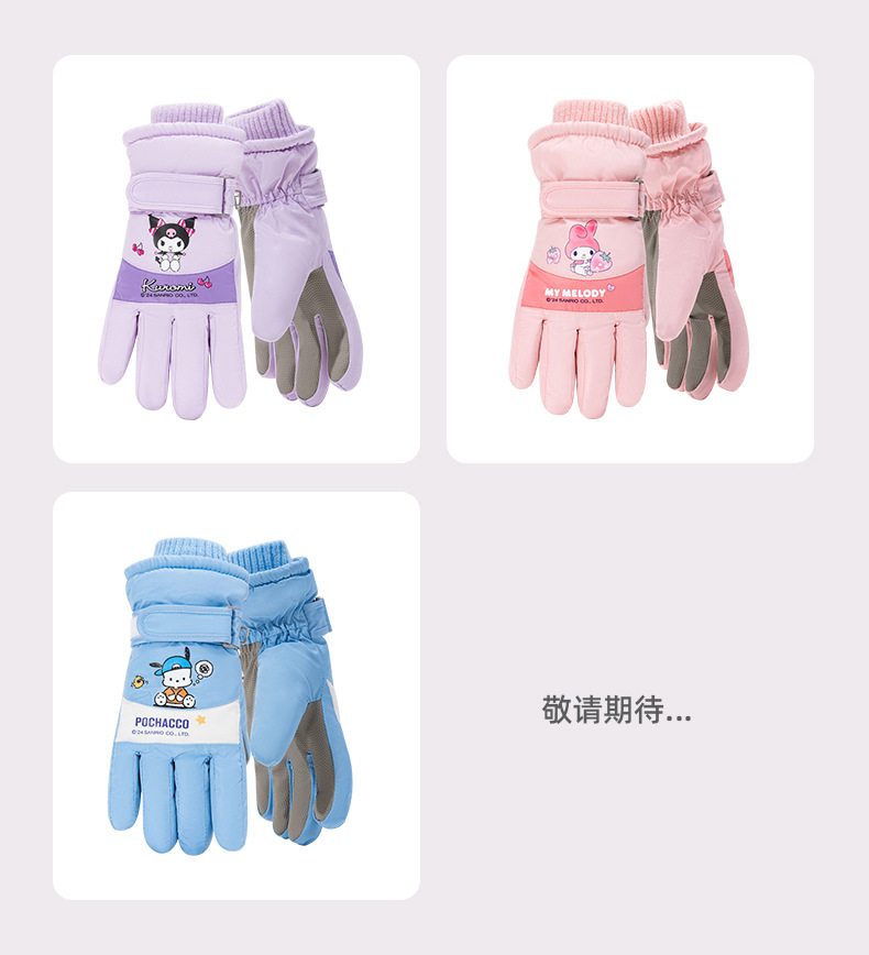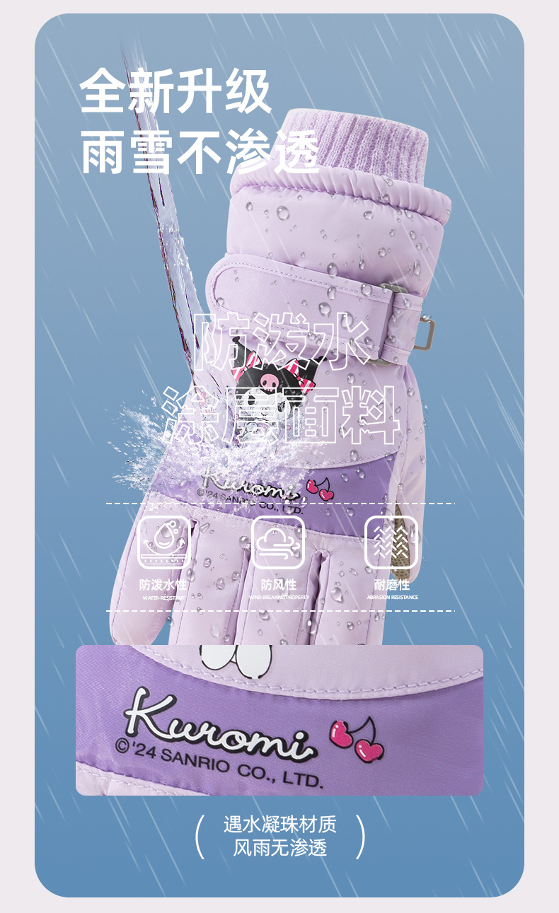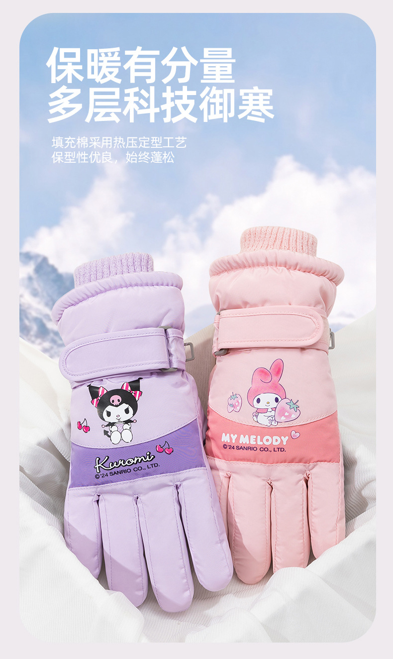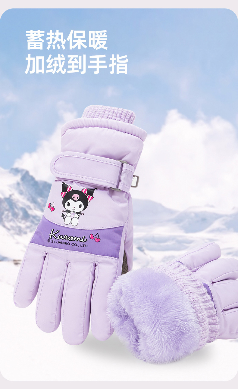 정품 Sanrio 어린이 스키 장갑 겨울 Kulomi 놀이 눈 따뜻한 면 장갑 소년 소녀를위한 방수제