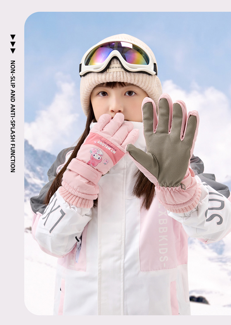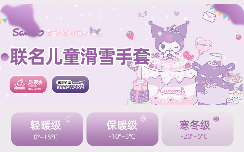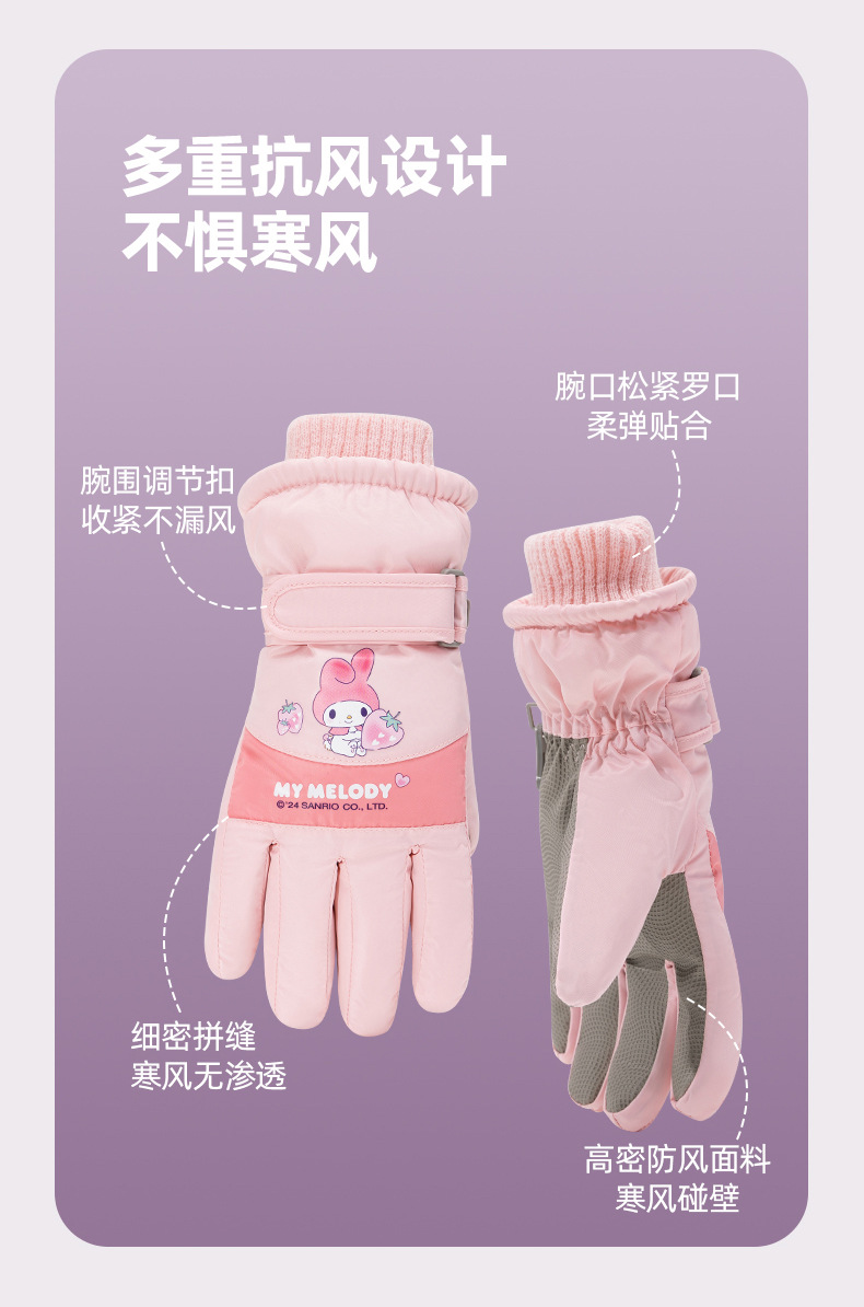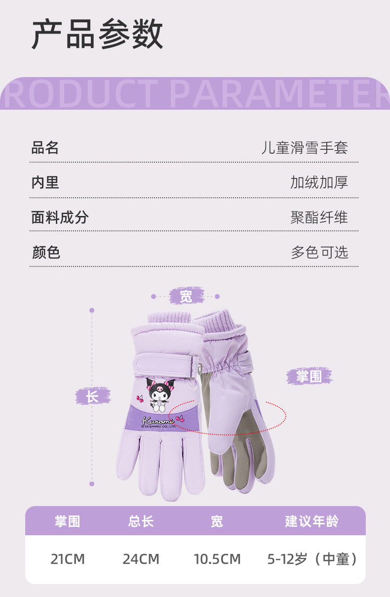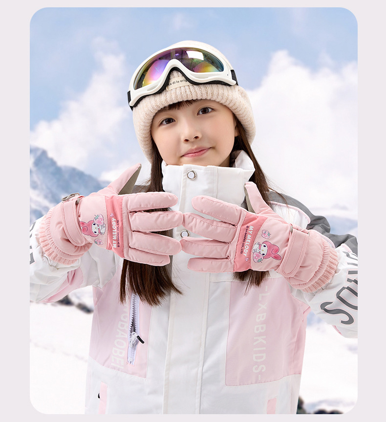 정품 Sanrio 어린이 스키 장갑 겨울 Kulomi 놀이 눈 따뜻한 면 장갑 소년 소녀를위한 방수제