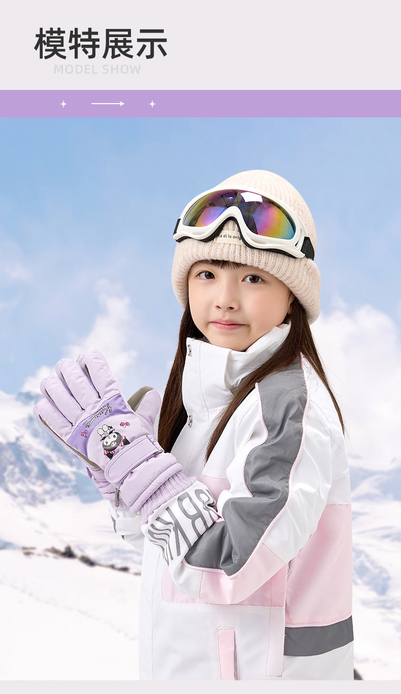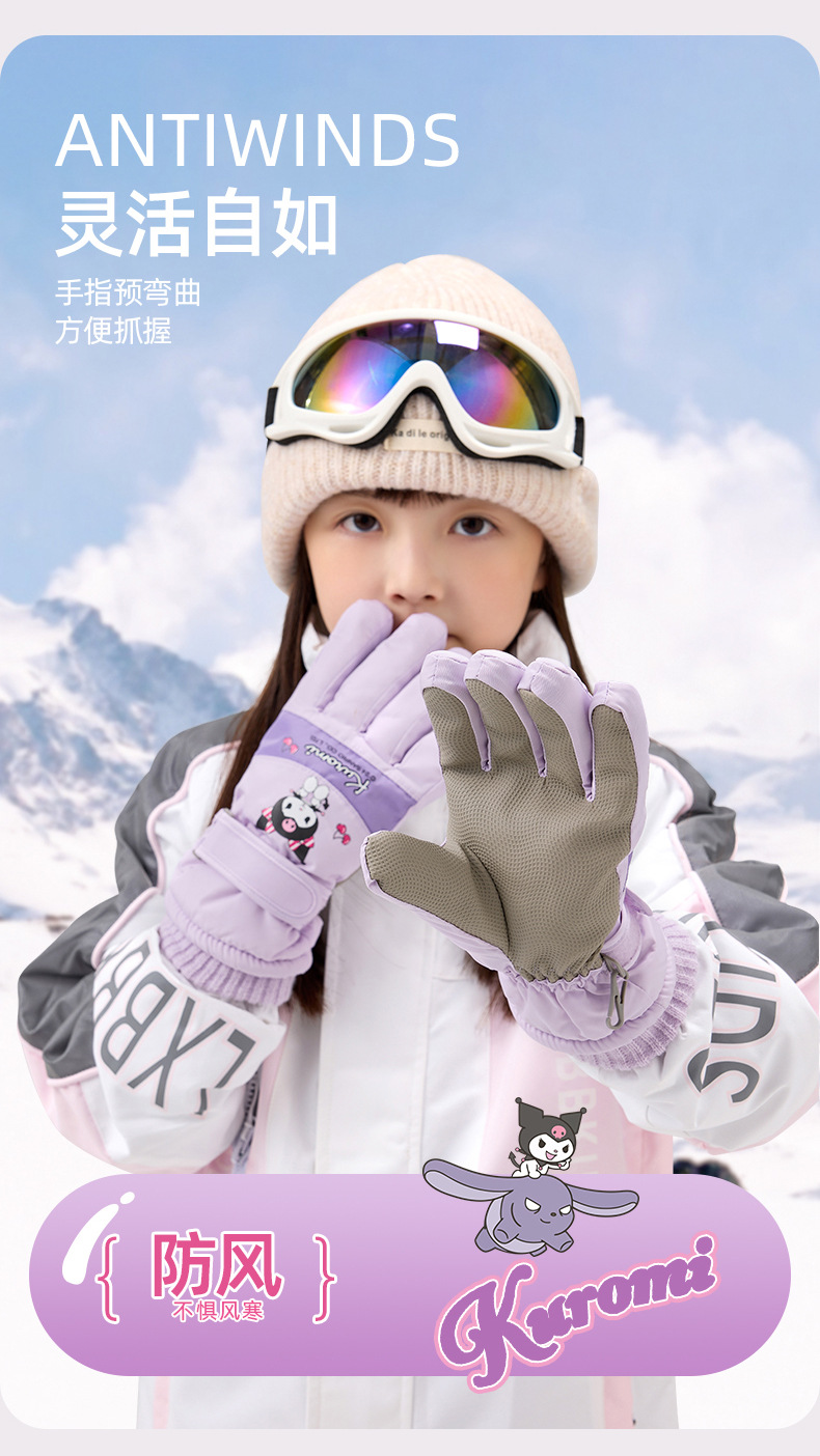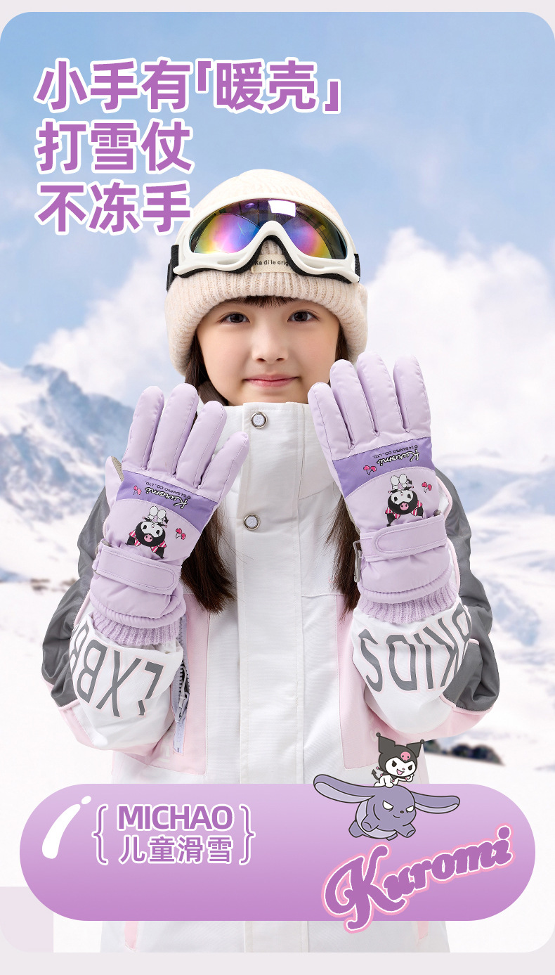 정품 Sanrio 어린이 스키 장갑 겨울 Kulomi 놀이 눈 따뜻한 면 장갑 소년 소녀를위한 방수제스토어 가기
