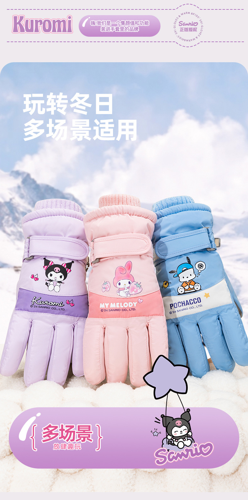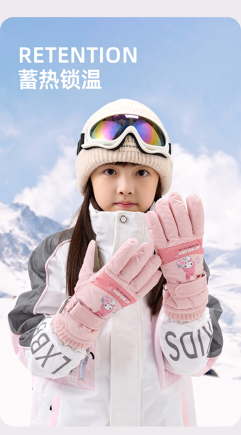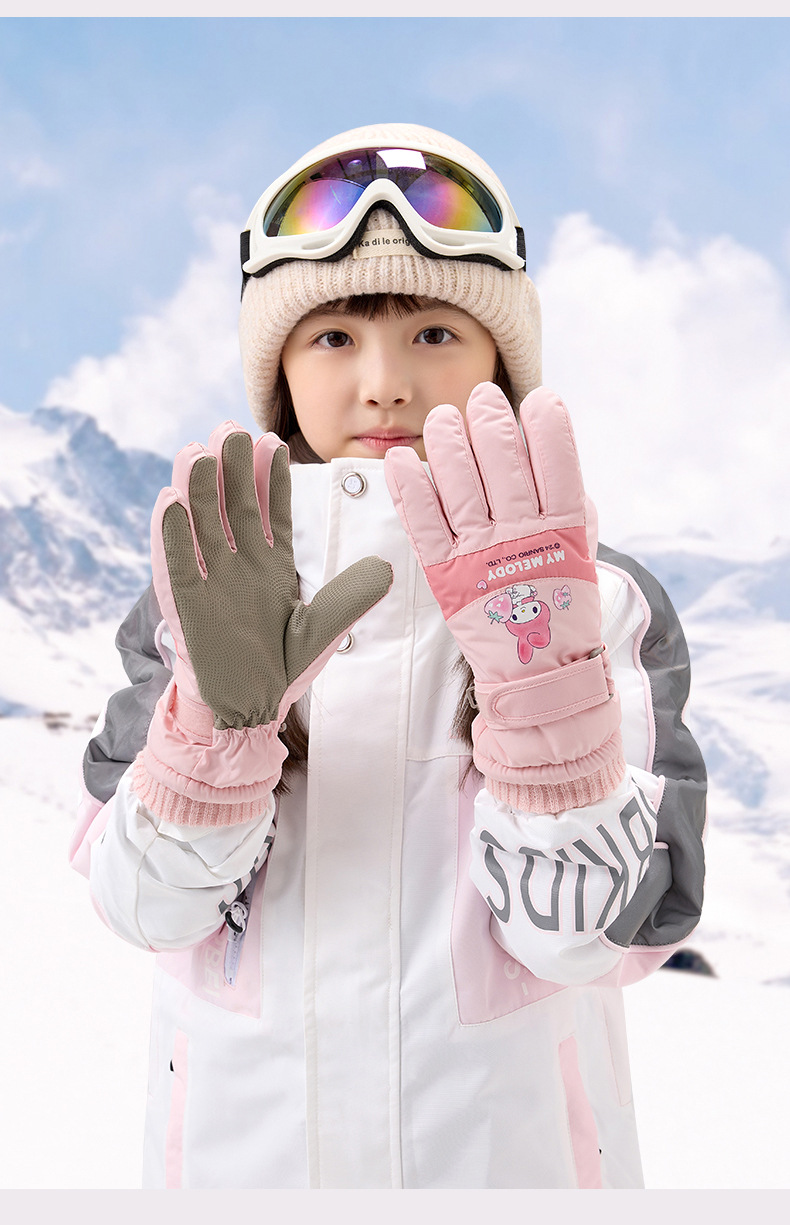 정품 Sanrio 어린이 스키 장갑 겨울 Kulomi 놀이 눈 따뜻한 면 장갑 소년 소녀를위한 방수제스토어 가기