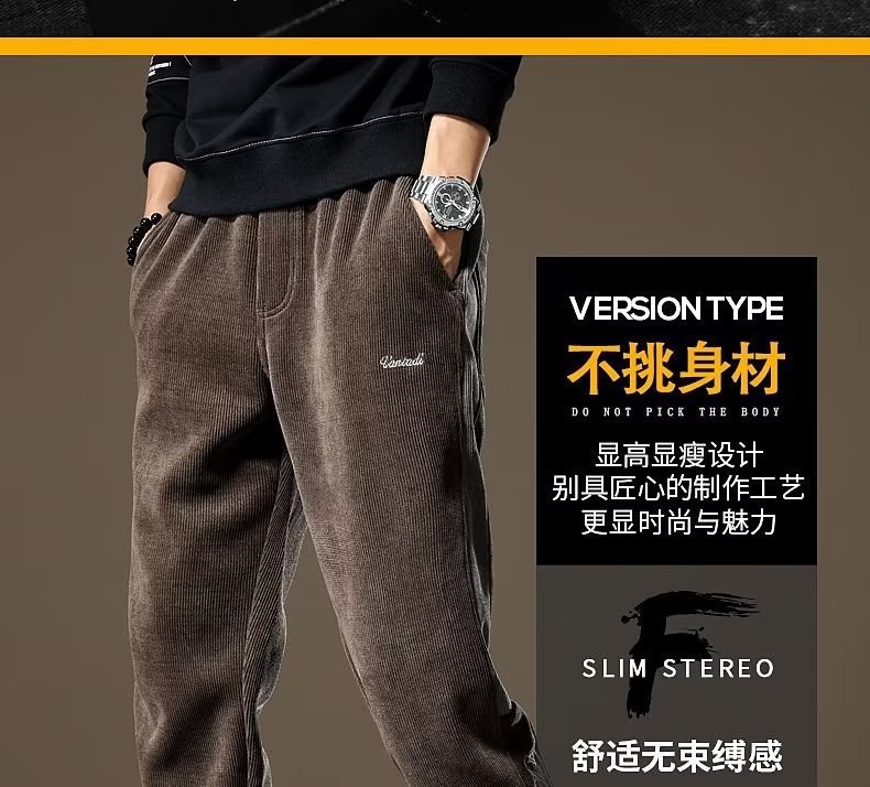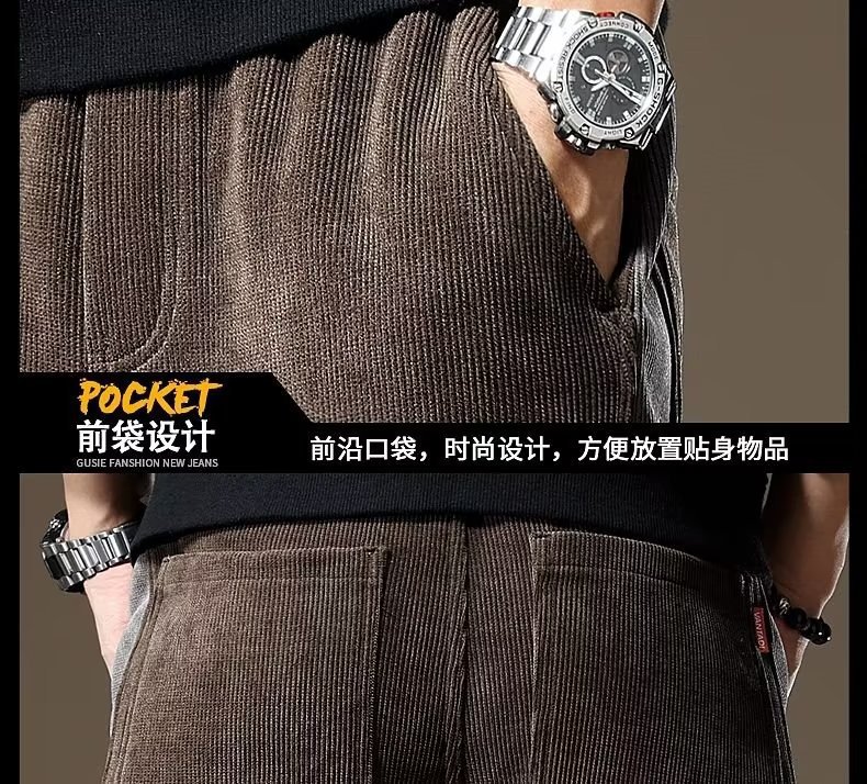 국경 간 미국의 무거운 스티칭 코듀로이 바지 남성 패션 브랜드 가을과 겨울 기모 새로운 느슨한 두꺼운 제조 업체 도매스토어 가기