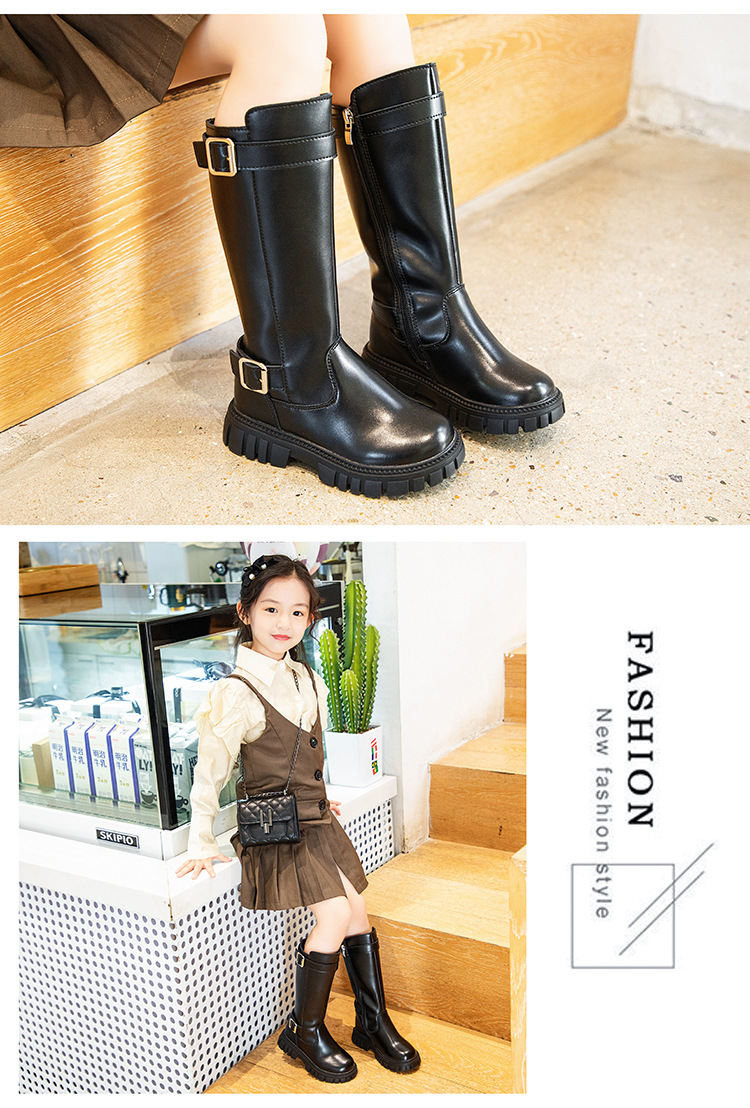 소녀 인터넷 기념 중장 부츠 2024 가을 및 겨울 새로운 한국 스타일 리틀 프린세스 스타일리스트 빅 키즈를위한 중장 부츠스토어 가기