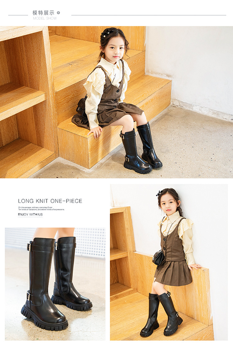 소녀 인터넷 기념 중장 부츠 2024 가을 및 겨울 새로운 한국 스타일 리틀 프린세스 스타일리스트 빅 키즈를위한 중장 부츠