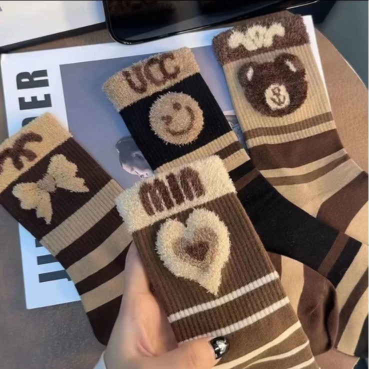 양말 여성의 가을과 겨울 Ins 긴 배럴 높은 색상 가치 인터넷 인기있는 높은 허리 달콤한 귀여운 편지 면 양말 보석 양말