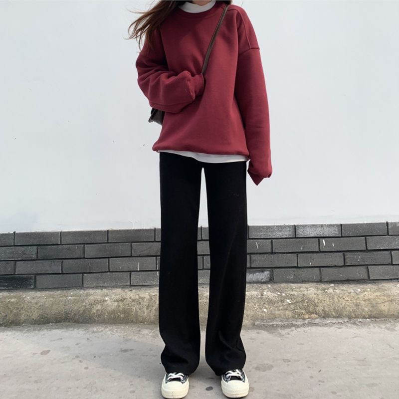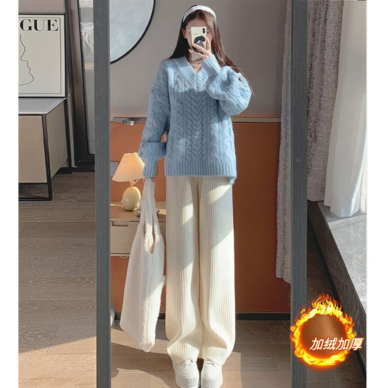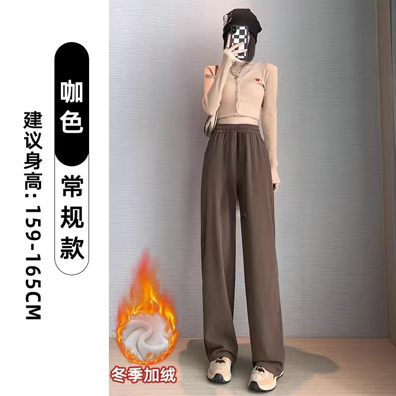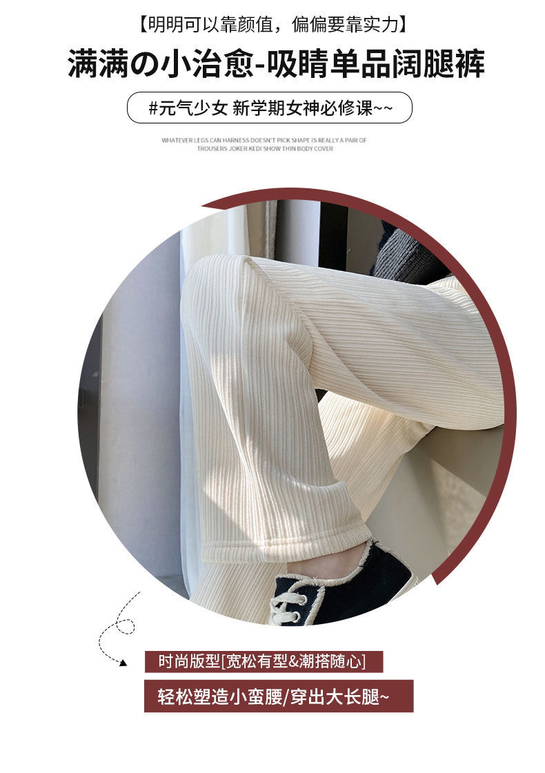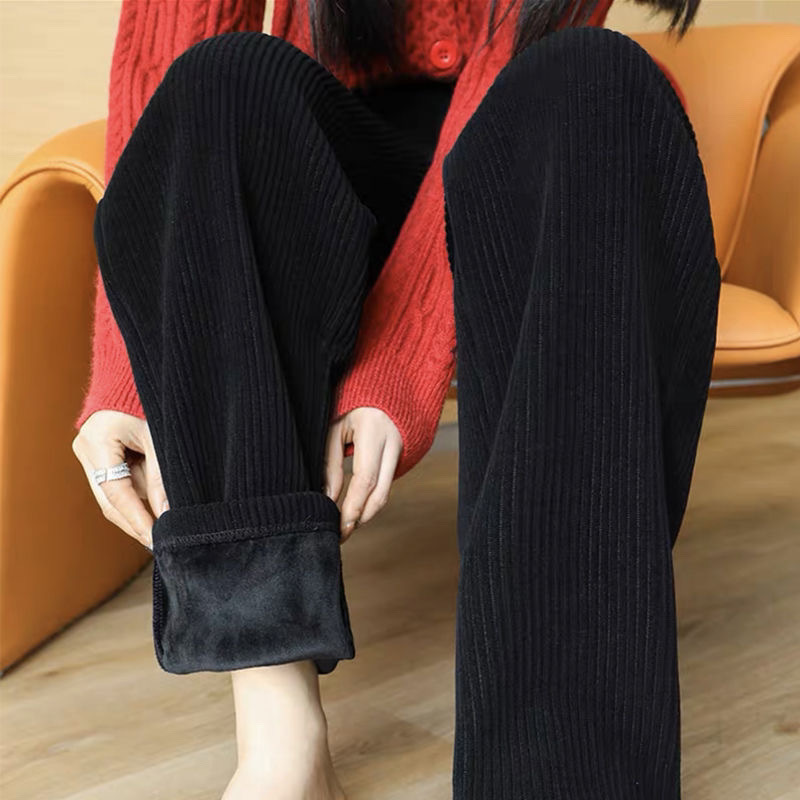 블랙 코듀로이 와이드 레그 팬츠 여성의 2024 가을/겨울 기모 두꺼운 높은 허리 슬리밍 체닐 스트레이트 바지스토어 가기