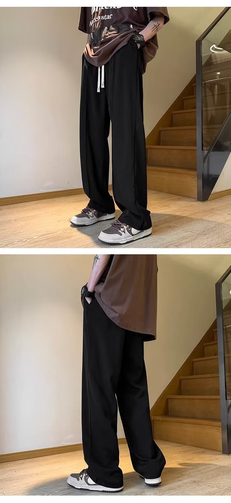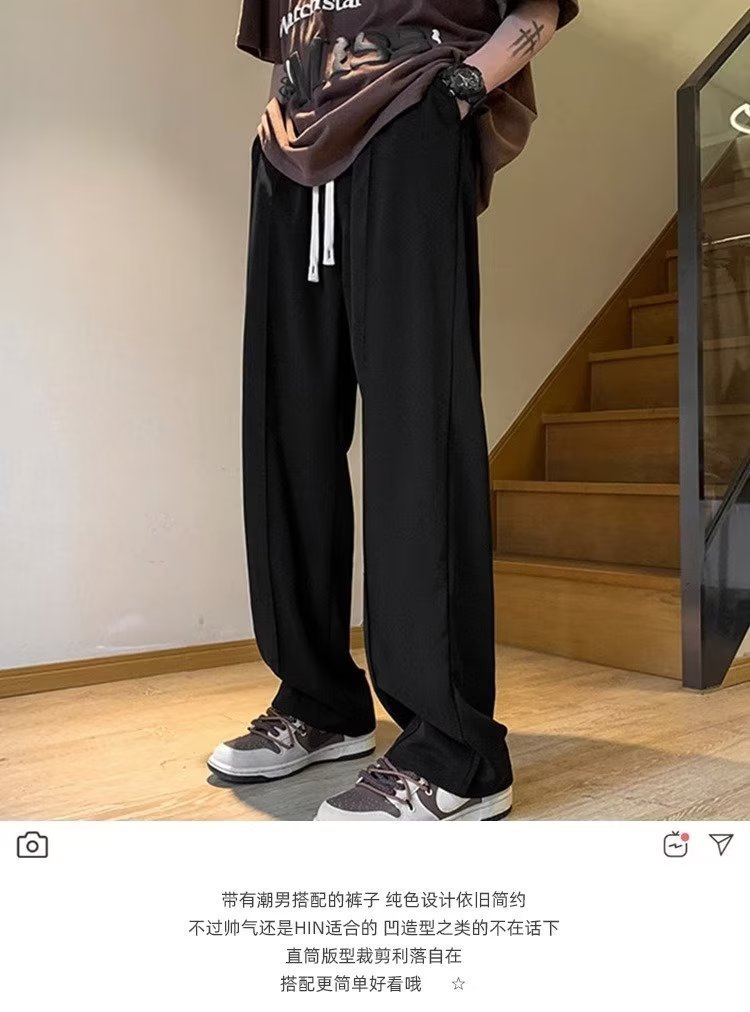 국경 간 남자의 느슨한 넓은 다리 스포츠 바지 봄과 여름 유행 얇은 얼음 실크 스트레이트 캐주얼 바지 남자 유행 도매스토어 가기