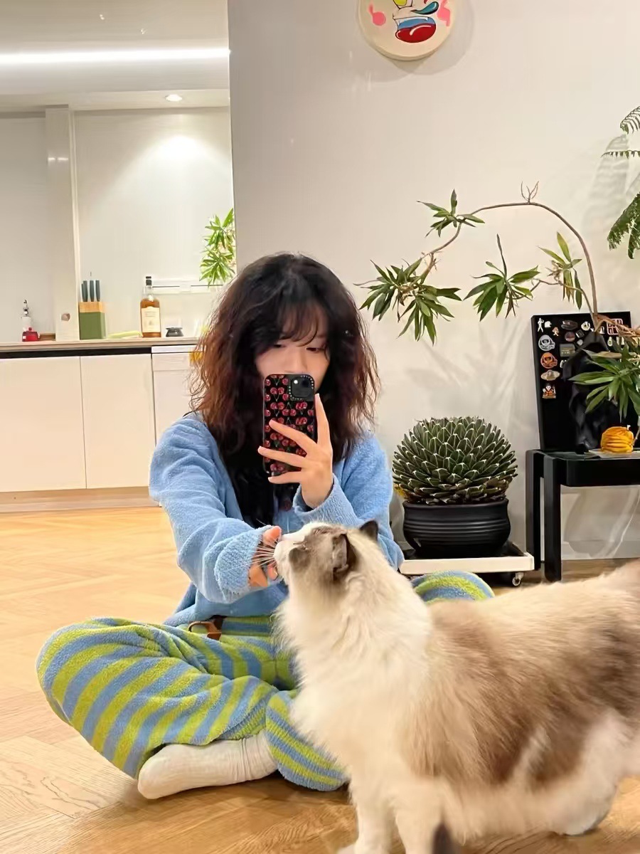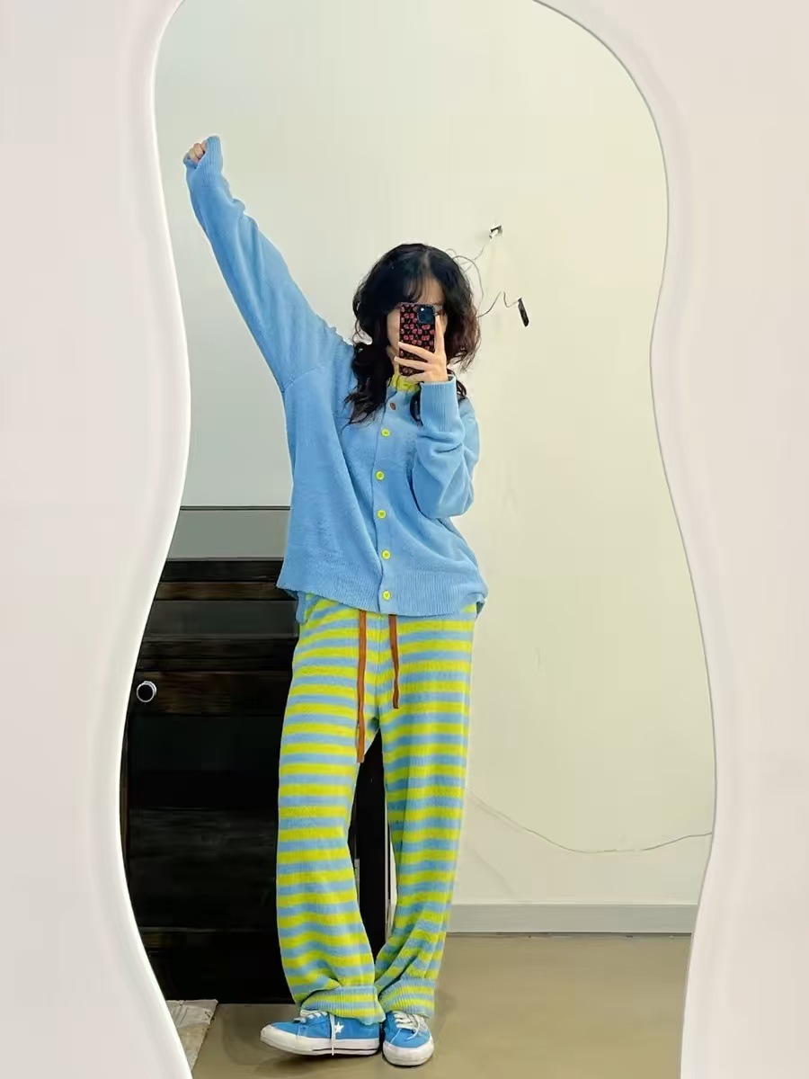 • 8844-Zhenbei 벨벳 라운드 넥 컬러 블록 스트라이프 슈트