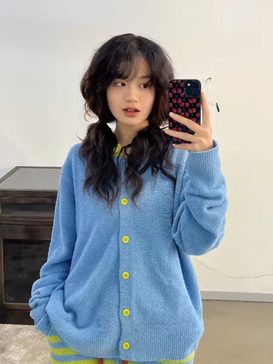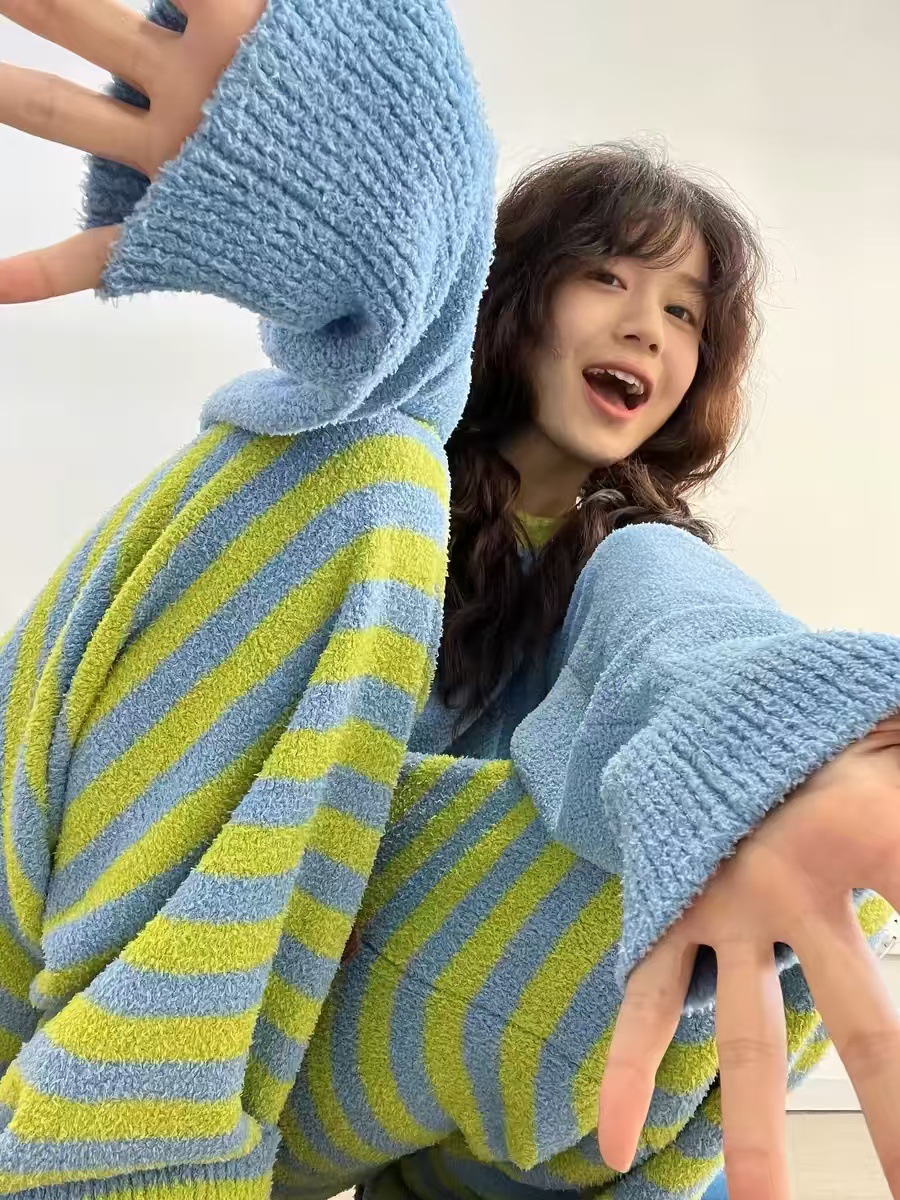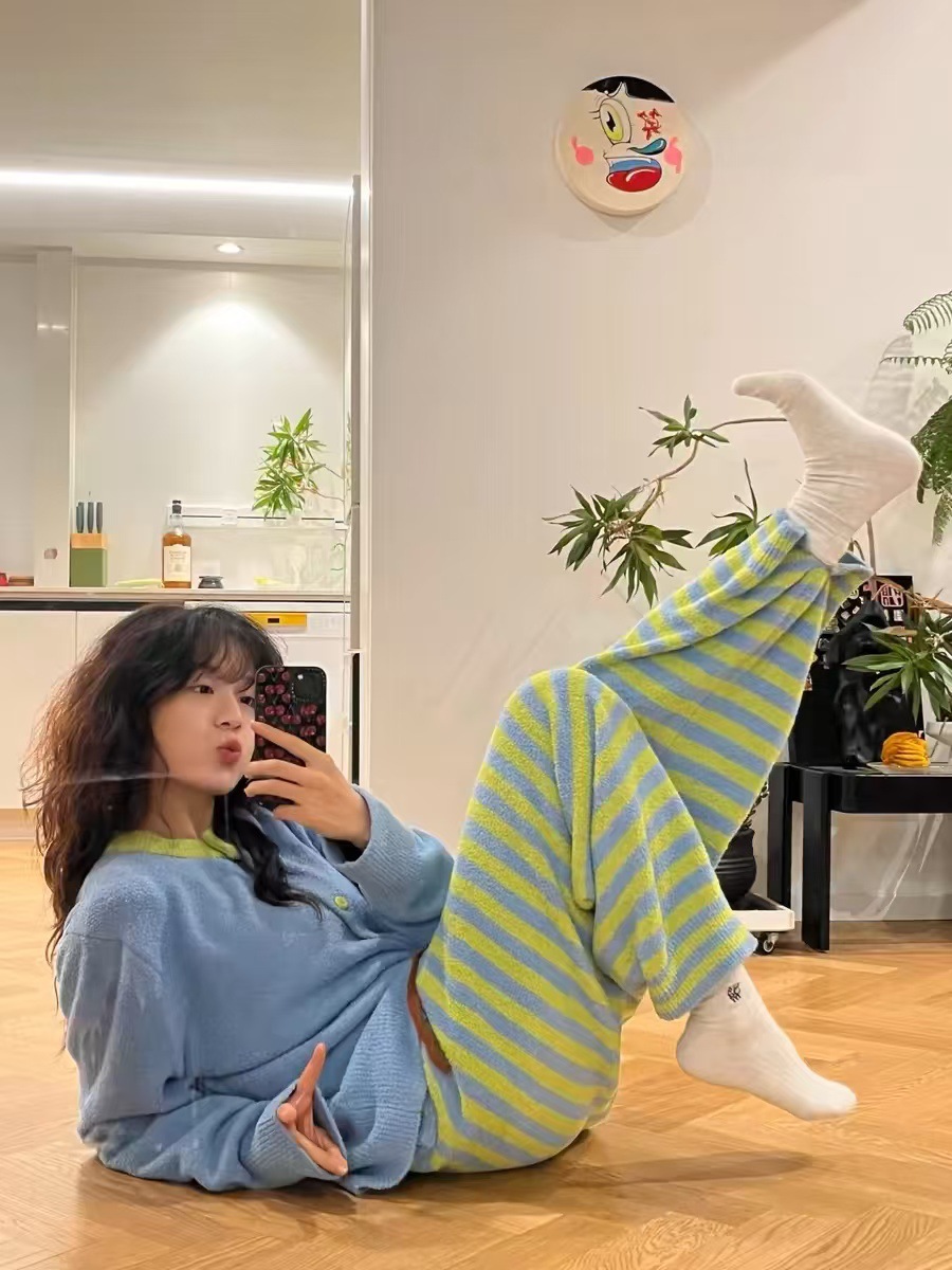 [젠베이 벨벳] 한국식 고급 스트라이프 파자마 여성 겨울 새 두껍게 된 봉제 니트 홈웨어스토어 가기