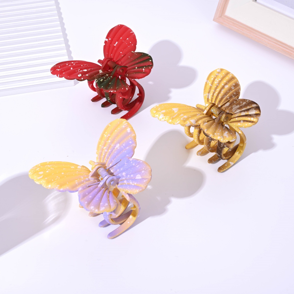 대형 더블 레이어 나비 그랩 클립 그라디언트 컬러 프로스트 텍스타일 머리 머리 머리 상어 크로스-테두리 새로운 헤어 클로