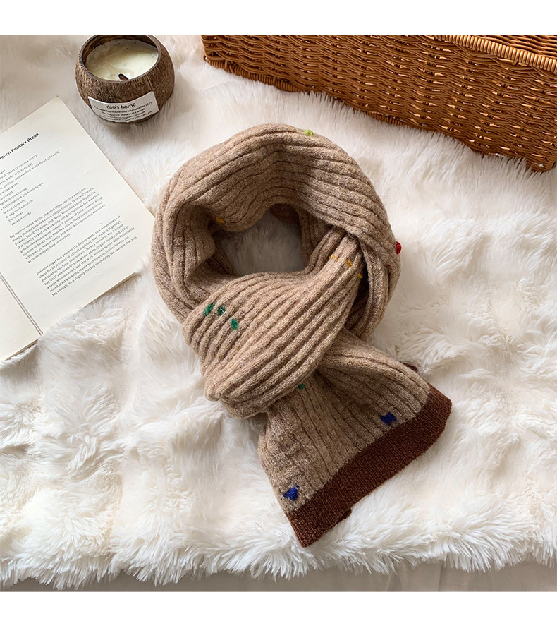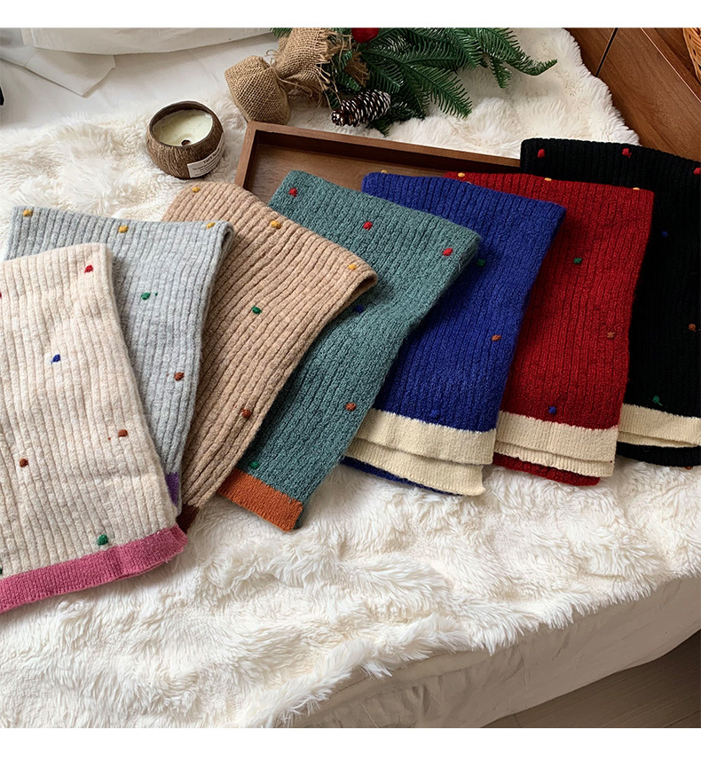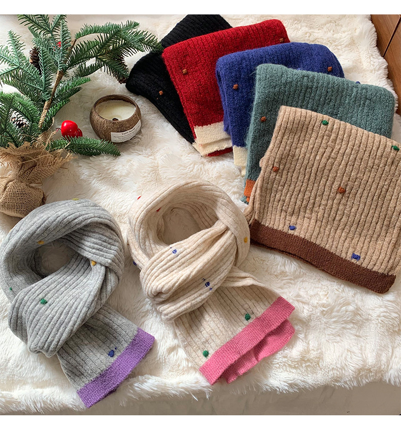 가을과 겨울 스카프 고급 센스 새로운 색상 일치 작은 색 공 따뜻한 냉간 목 스카프 여자 올 매치 목도리