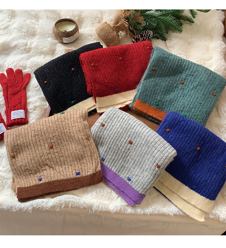 가을과 겨울 스카프 고급 센스 새로운 색상 일치 작은 색 공 따뜻한 냉간 목 스카프 여자 올 매치 목도리스토어 가기