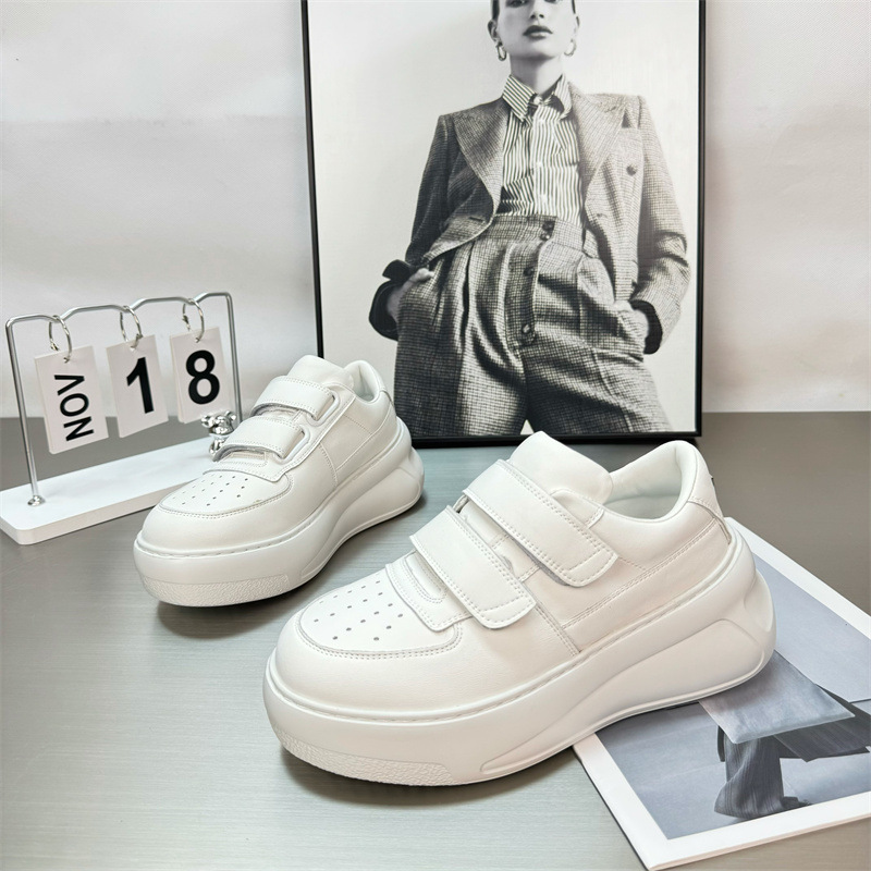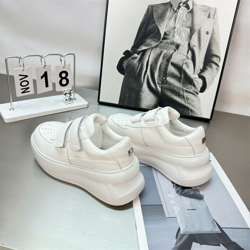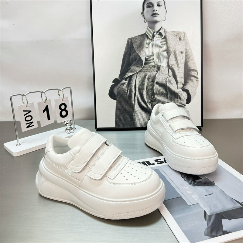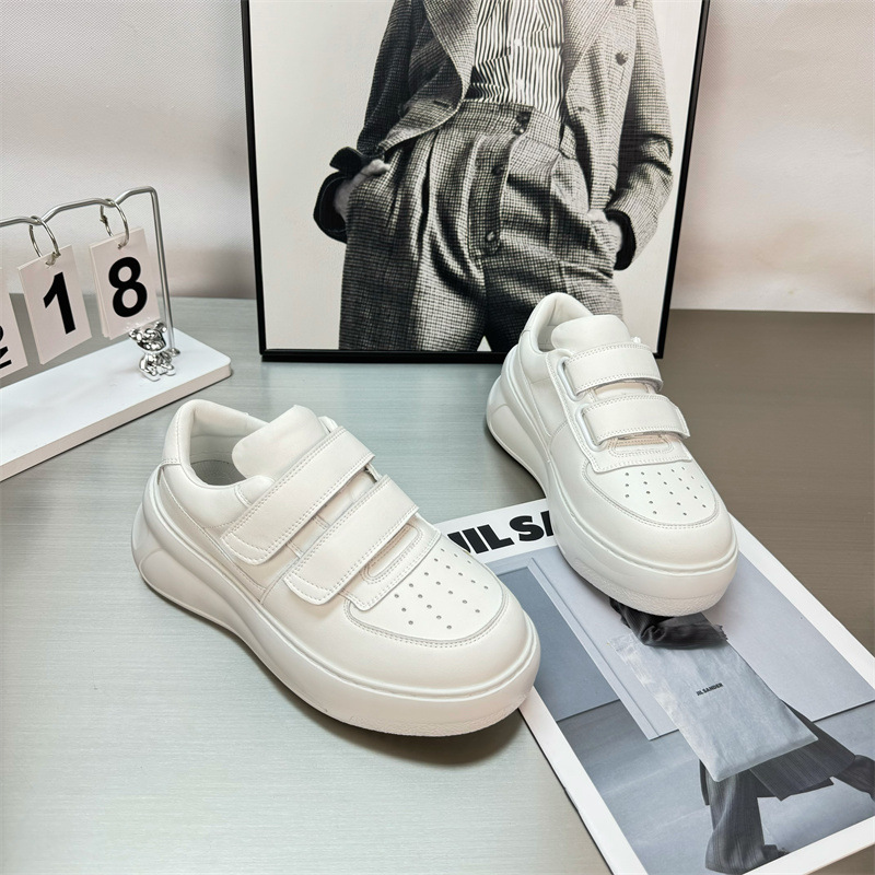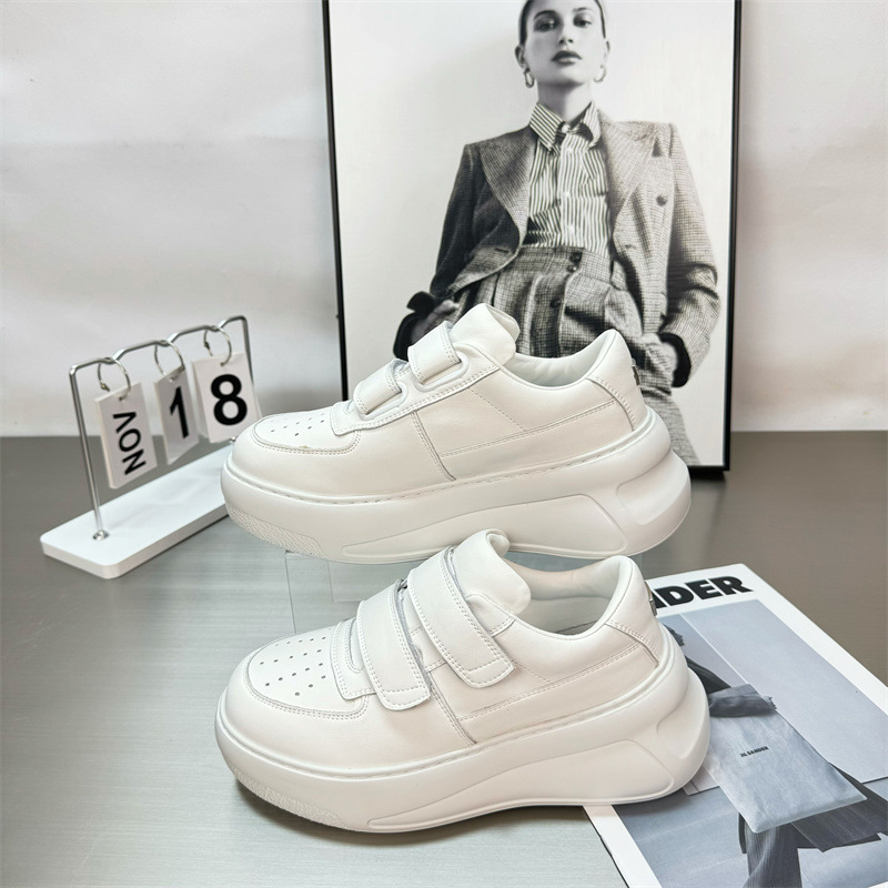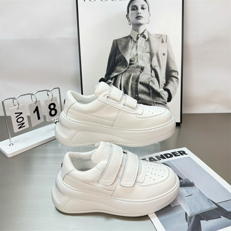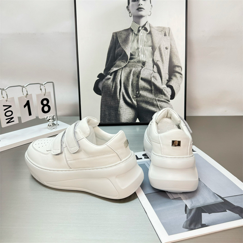 2025 년 봄 새로운 정품 가죽 시대 감소 벨크로 두꺼운 밑창 흰색 신발 여성 올 매치 높이 증가 스포츠 캐주얼 운동화