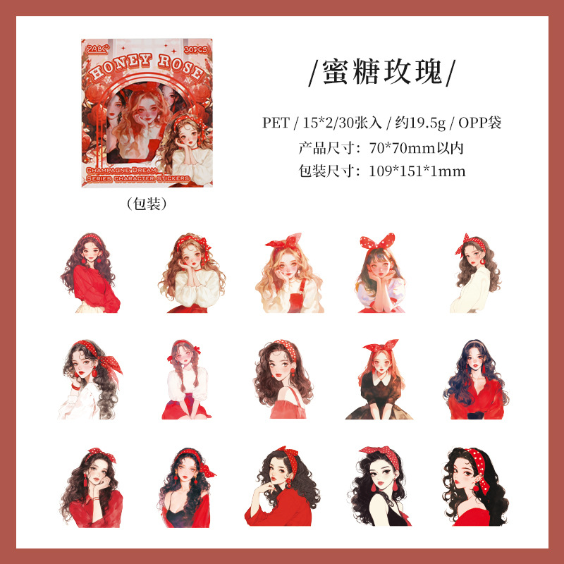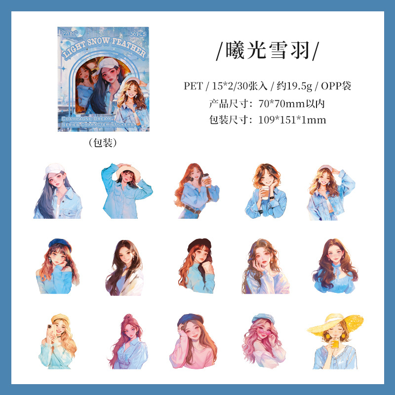 [샴페인 꿈] 캐릭터 소녀 스티커 가방 만화 창조적 인 손 계정 스티커 스티커 애완 동물 스티커 사용자 정의
