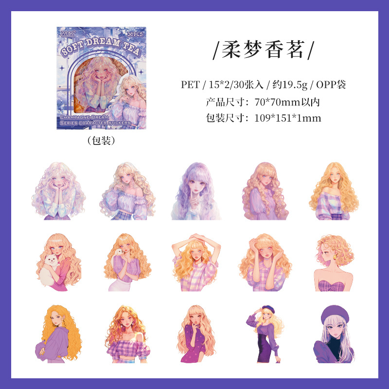 [샴페인 꿈] 캐릭터 소녀 스티커 가방 만화 창조적 인 손 계정 스티커 스티커 애완 동물 스티커 사용자 정의스토어 가기