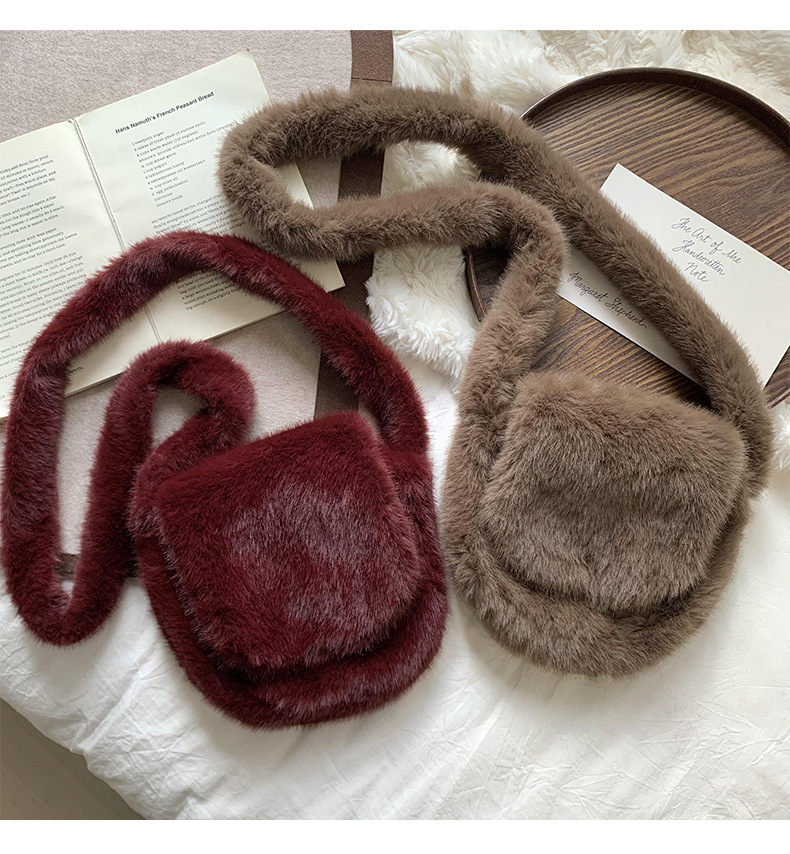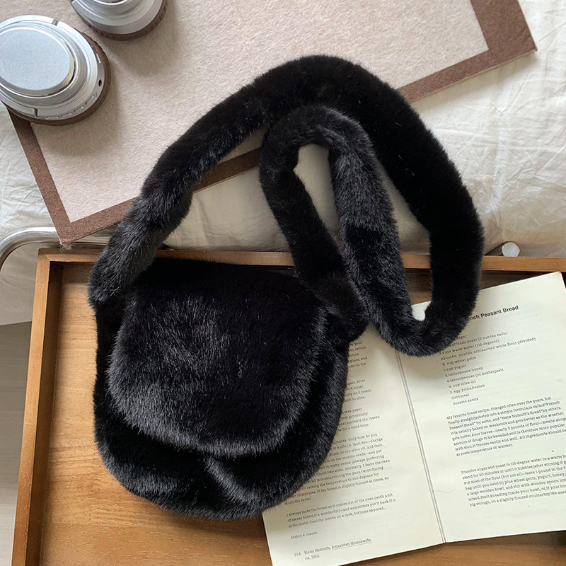 휴대폰 가방 가을 겨울 새로운 다용도 단색 귀여운 모피 핸드백 플립 숄더백 캐주얼 크로스 바디 백