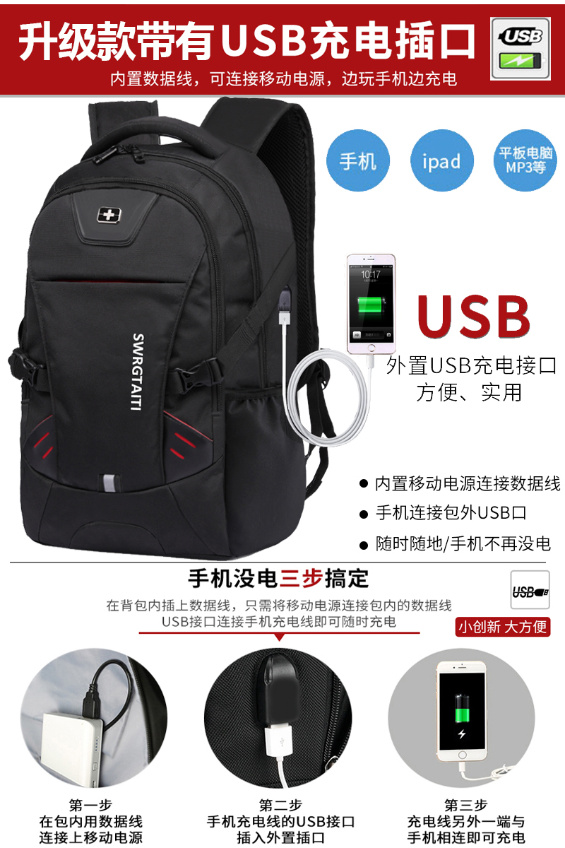 스위스 육군 칼 배낭 남자 배낭 한국 스타일 고등학생 학교 가방 남자 패션 컴퓨터 가방 젊은 별