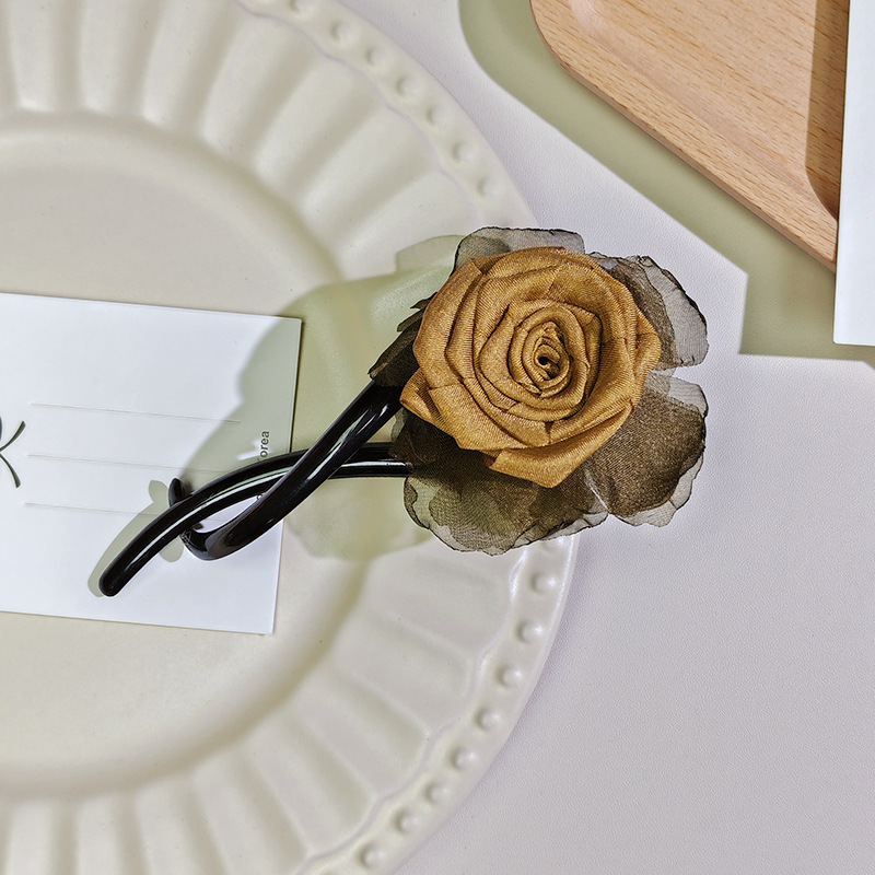 빈티지 드라이 로즈 플라워 헤어핀 한 단어 클립 여성 꽃 트위스트 클립 다시 머리 디스크 머리 그랩 클립 머리 클립