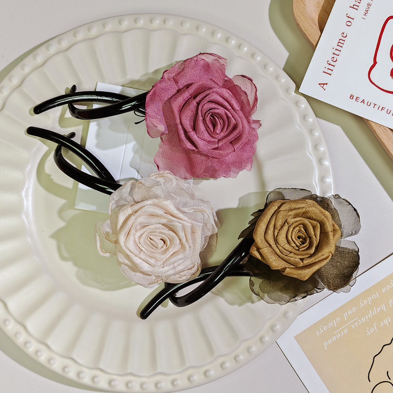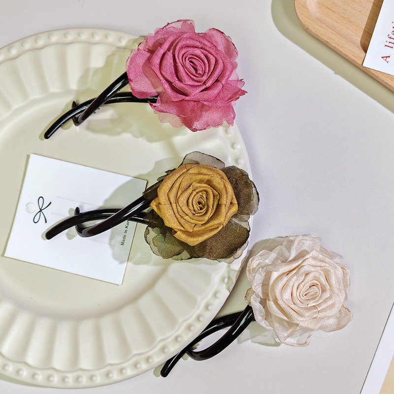 빈티지 드라이 로즈 플라워 헤어핀 한 단어 클립 여성 꽃 트위스트 클립 다시 머리 디스크 머리 그랩 클립 머리 클립스토어 가기