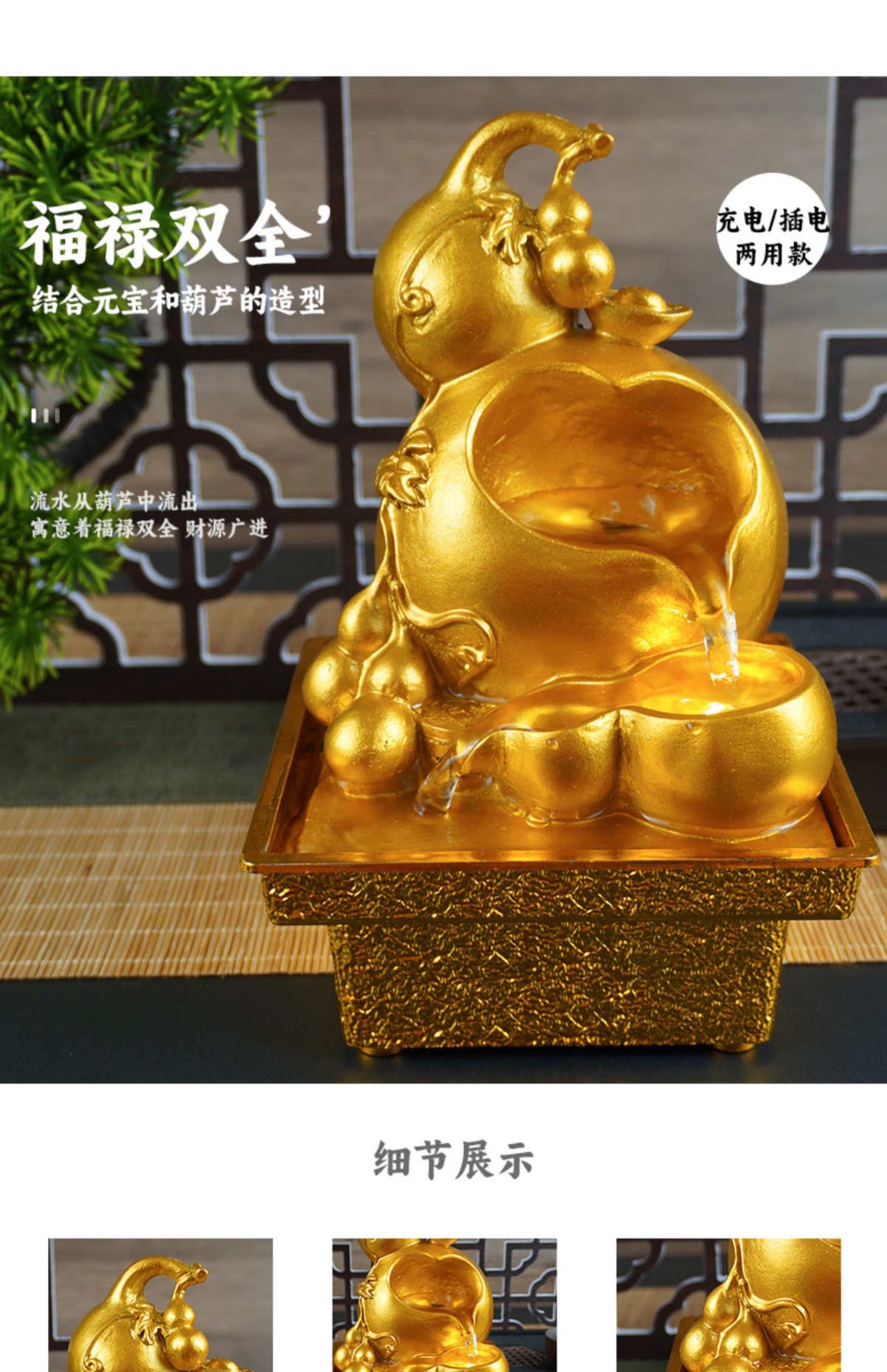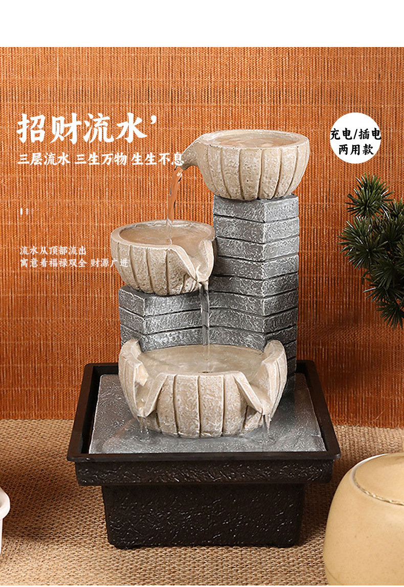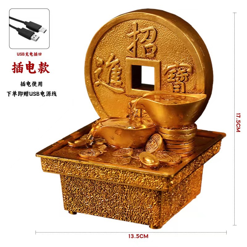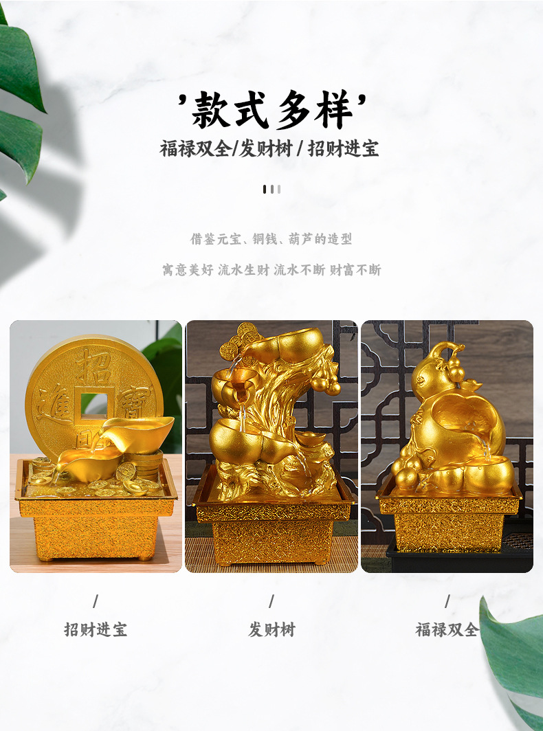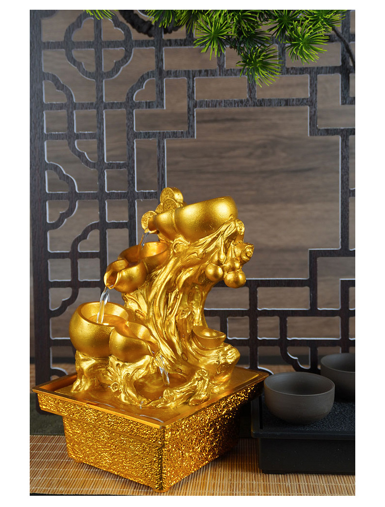 국경 간 운세 순환 물 분수 장식품 데스크탑 작은 물 재산 만들기 풍수 휠 오프닝 집들이 장식스토어 가기