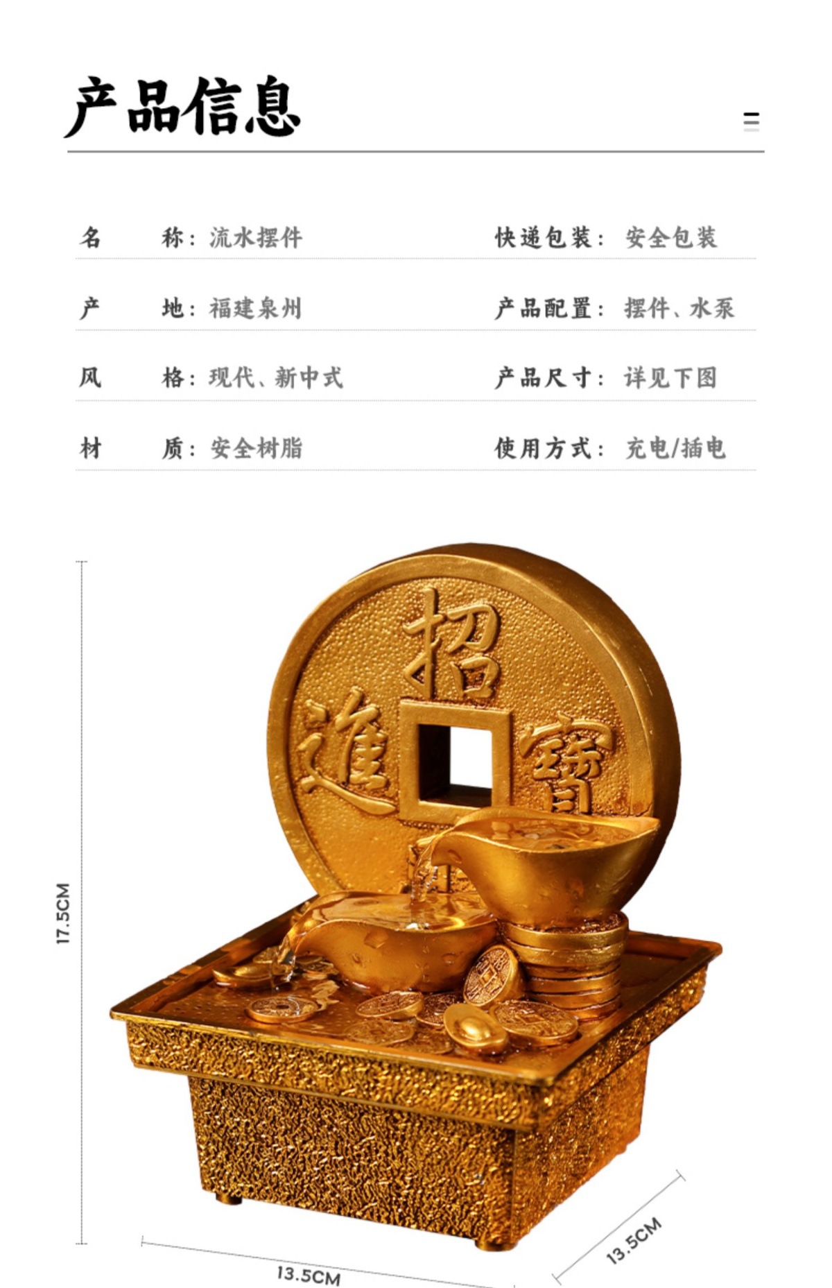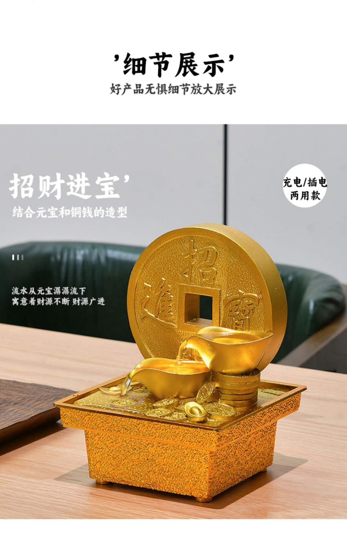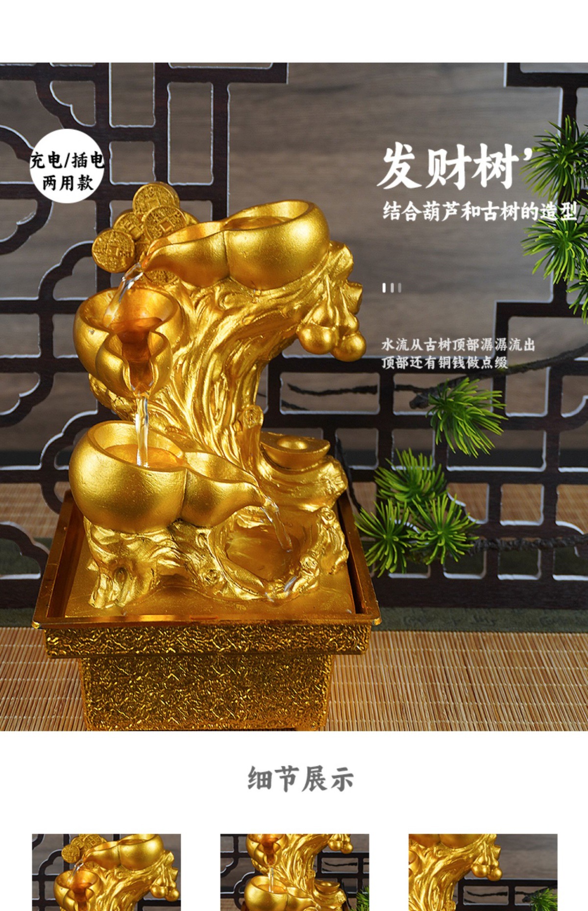 국경 간 운세 순환 물 분수 장식품 데스크탑 작은 물 재산 만들기 풍수 휠 오프닝 집들이 장식스토어 가기
