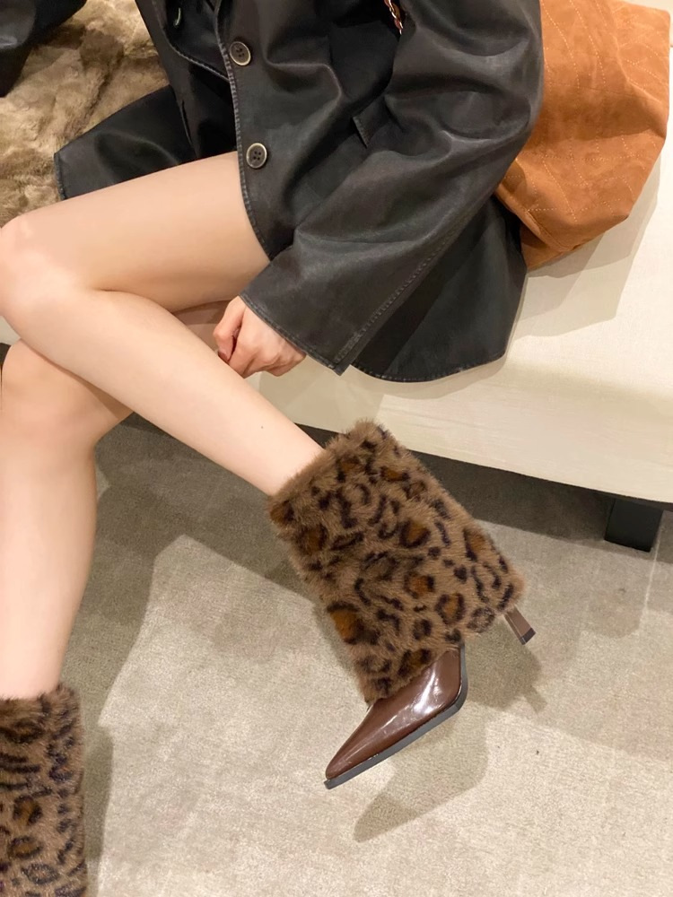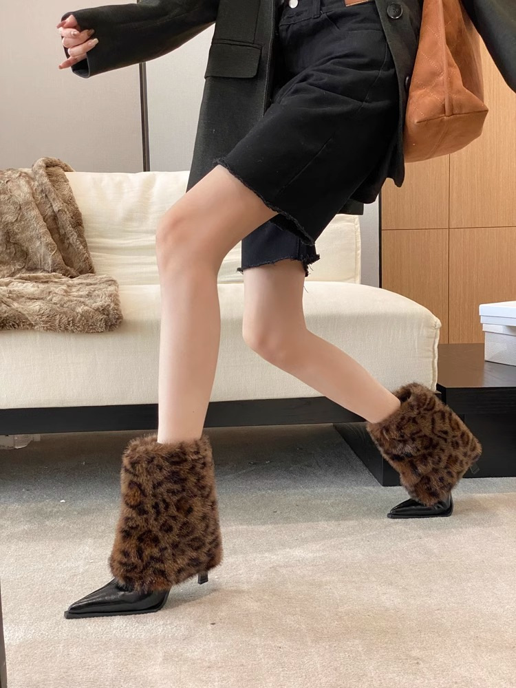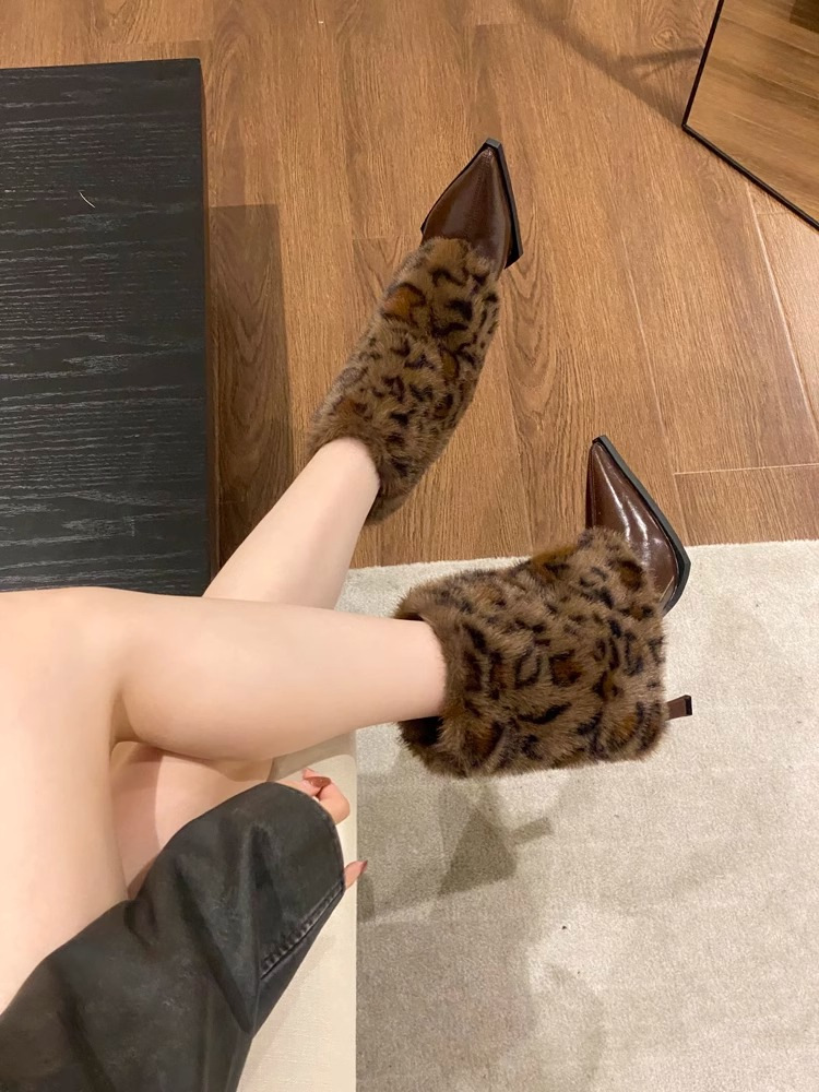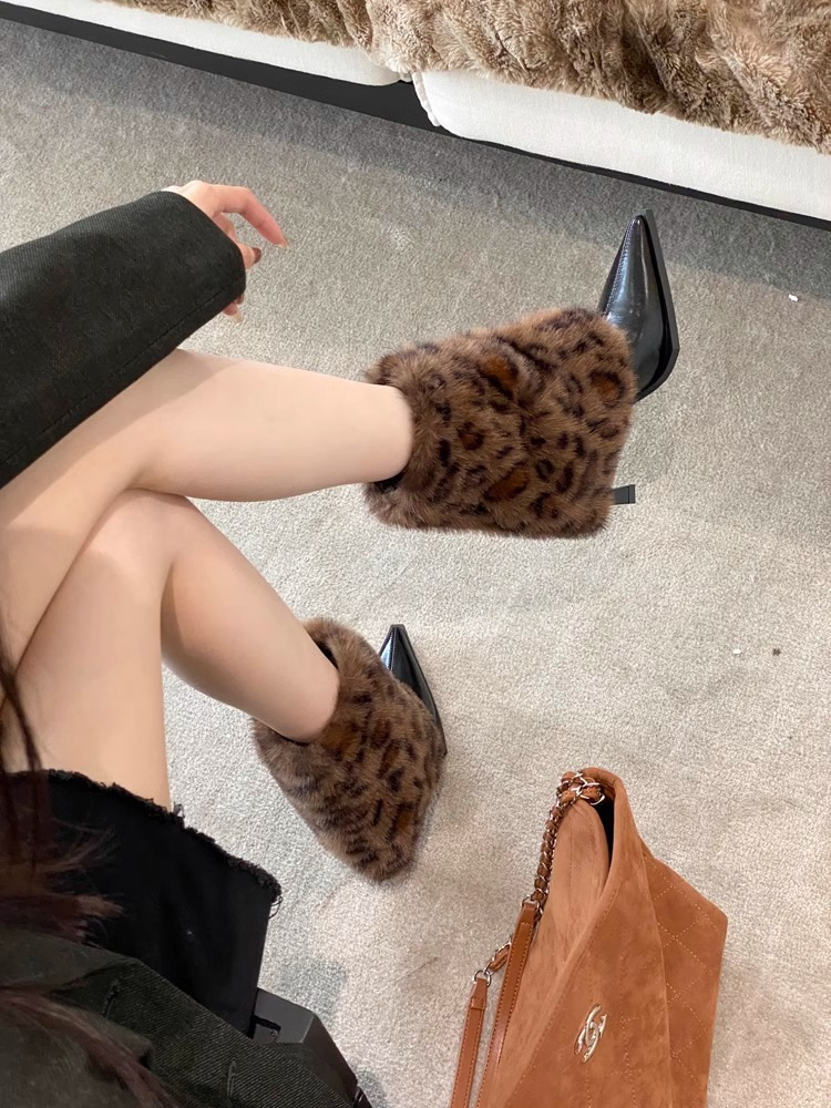 2024 가을과 겨울 새로운 기모 따뜻한 짧은 부츠 여성 부츠 뾰족한 패션 부츠 마오 마오 면화 부츠
